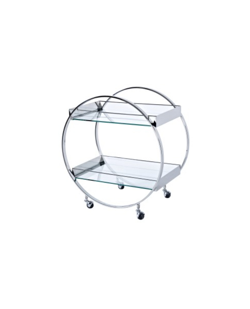 Châssis en métal avec 2 étagères en verre fumé et 4 roulettes
