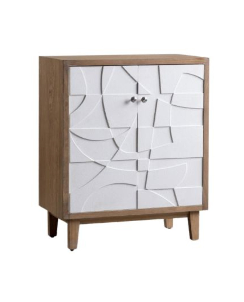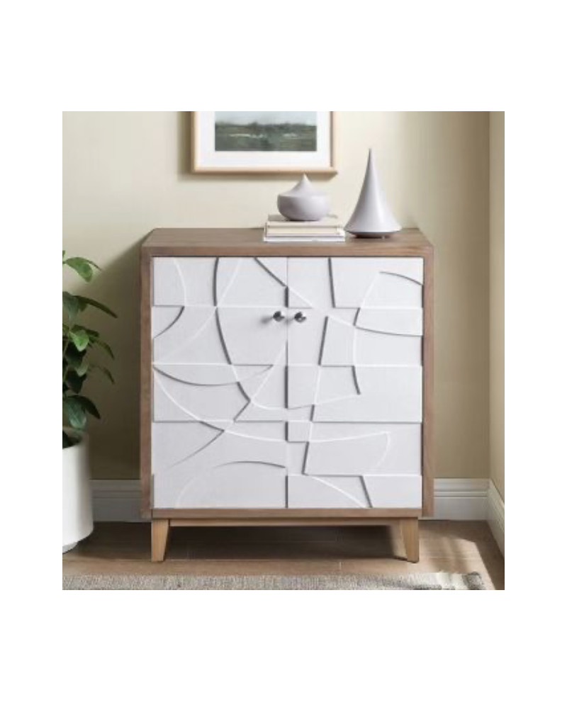 Les meubles de la collection KRAFT sont chics et design. Leurs motifs sculptés et en matière granulée blanche en font des pièces de qualité. L'épaisseur des meubles prouve la qualité des matériaux utilisés. Ce meuble se place dans un séjour ou une entrée afin de bénéficier de la place de rangement. Disposez des objets de décoration sur le dessus afin d'embellir ce meuble. Matière : medium de bois et pin.
