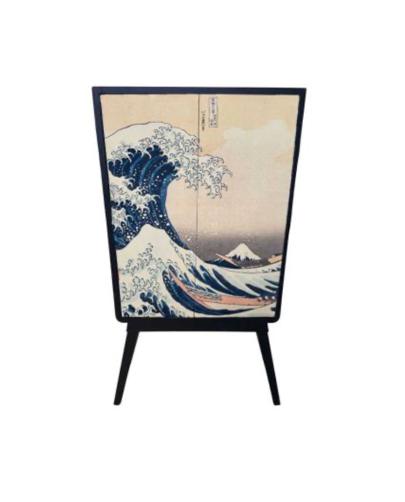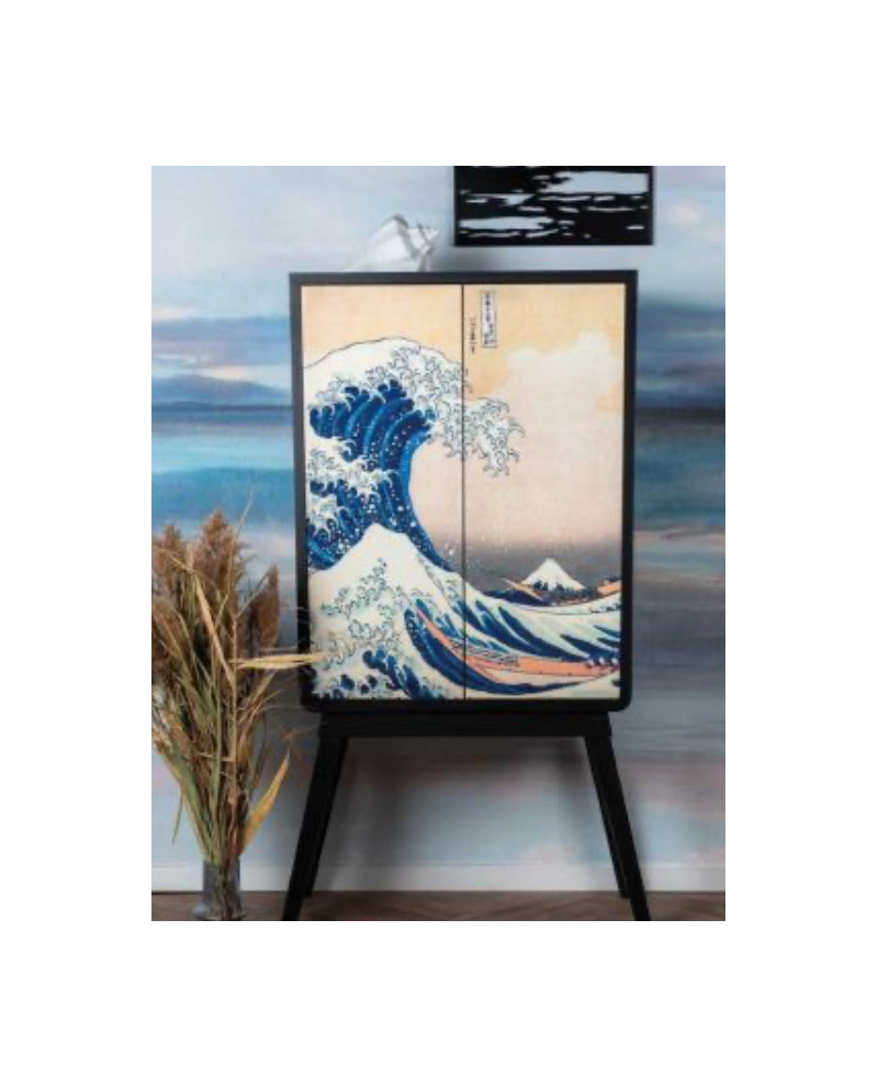Ce meuble haut à deux portes, orné de la célèbre vague d'Hokusai, apportera une touche artistique et intemporelle à toute pièce. Sa structure en MDF et pin assure robustesse et durabilité, tandis que les portes équipées d'un système push and pull offrent une grande facilité d’utilisation. Un meuble design qui allie esthétique et fonctionnalité, parfait pour compléter tout intérieur. Il saura séduire vos clients à la recherche d’un produit à la fois élégant et moderne
