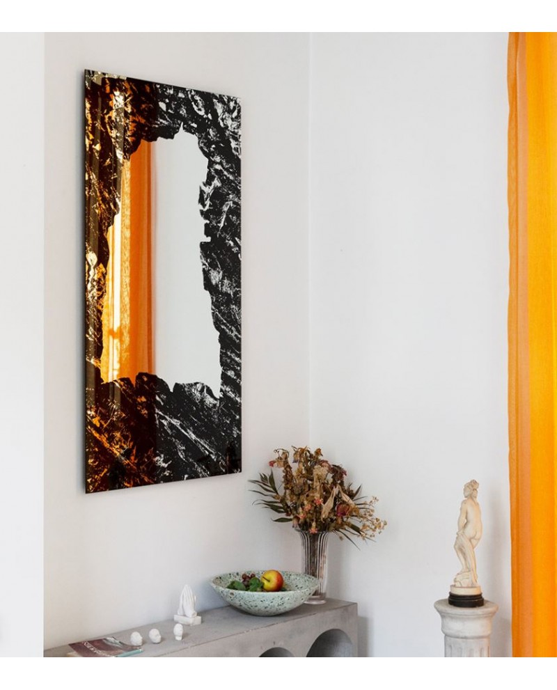 La série Strips représente un miroir dans sa forme pure: un miroir central avec une bande de miroir biseauté autour. Peut être suspendu dans les deux sens. Pas de dos en MDF, seulement un miroir.