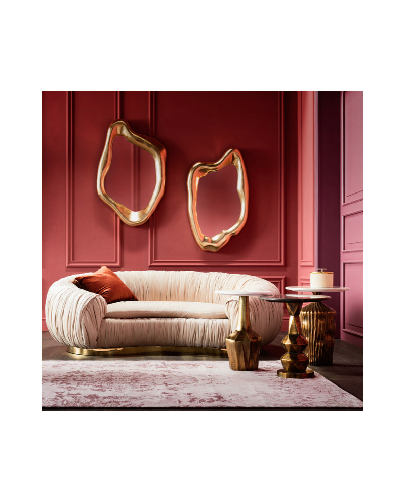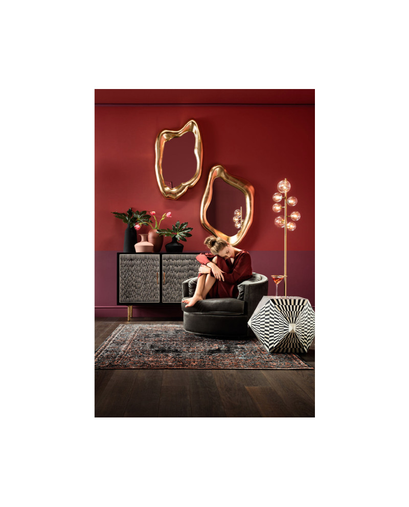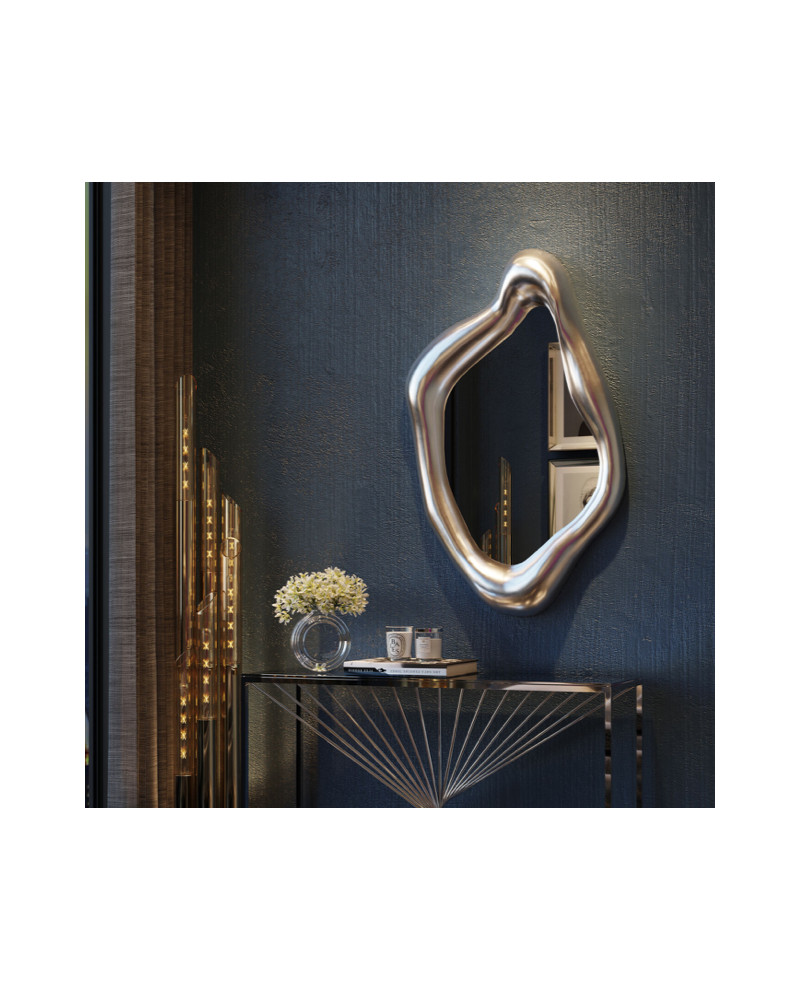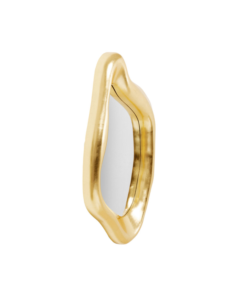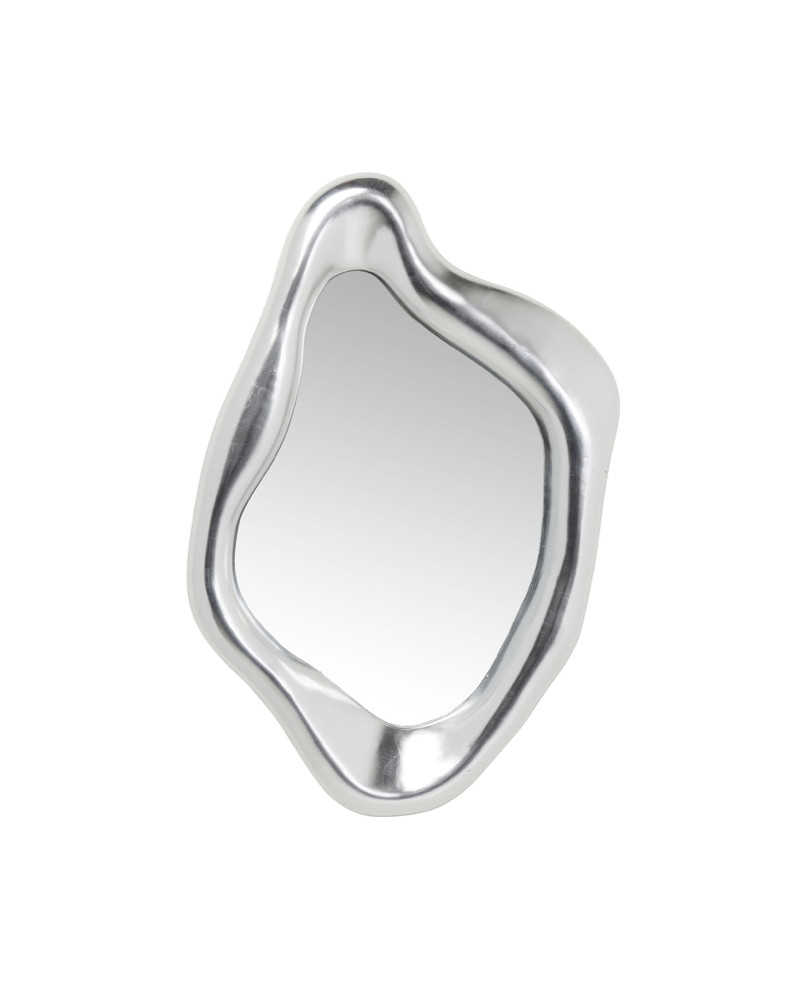 Ni rond ni anguleux : ce miroir fascine par sa forme organique. Disposés par deux sur un mur coloré, ils ressemblent à une petite installation artistique.
