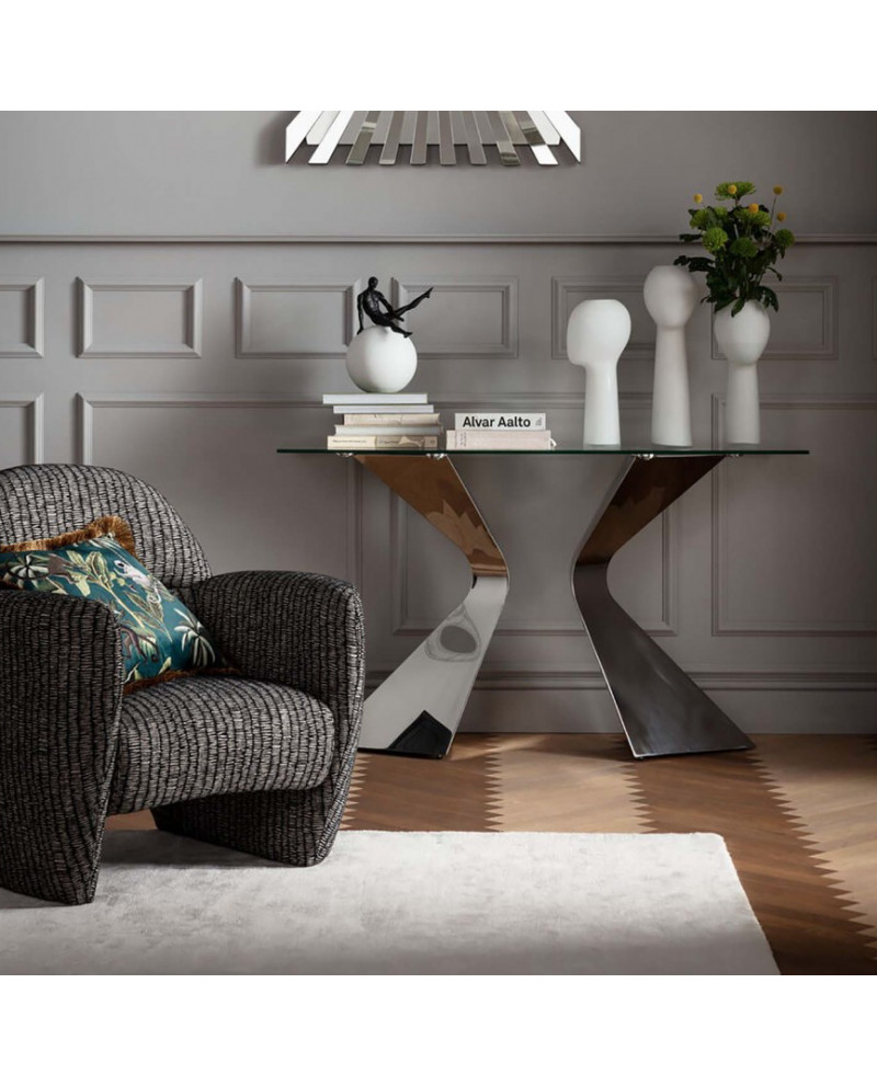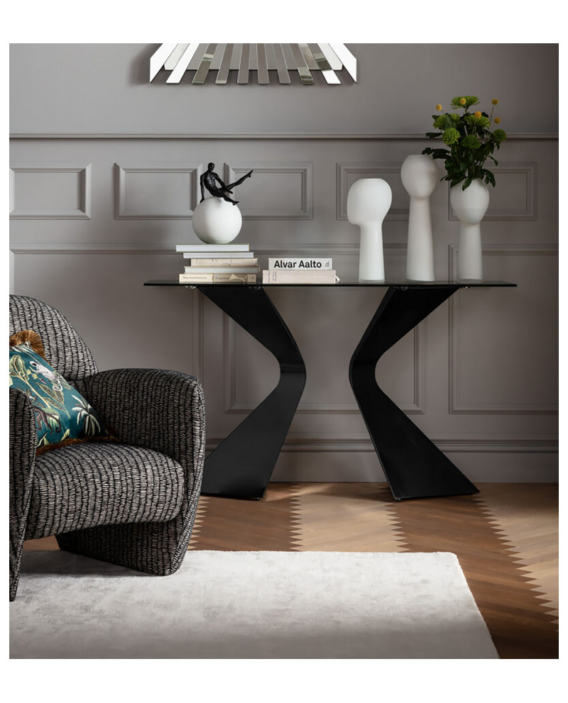 Cette console moderne et élégante se compose d’un pied en acier galvanisé surplombé d’un plateau en verre trempé de 13 mm d’épaisseur. Son esthétique raffinée vous révélera tout son potentiel une fois la console conjuguée à une entrée ou un salon design.