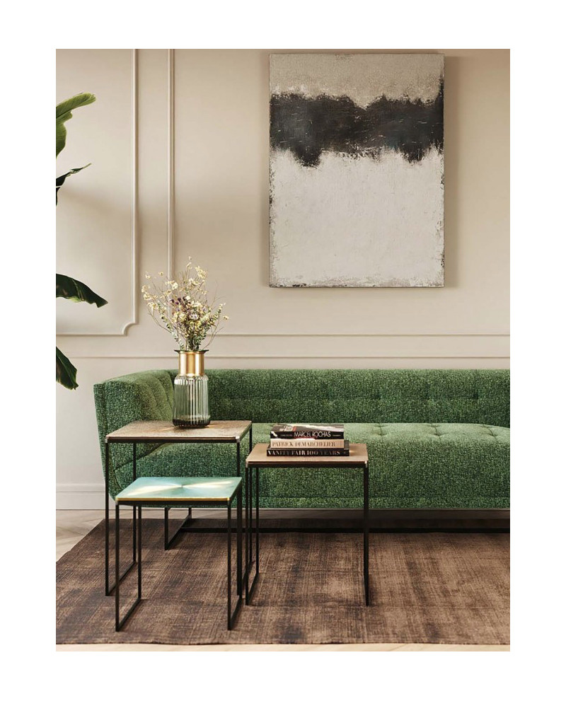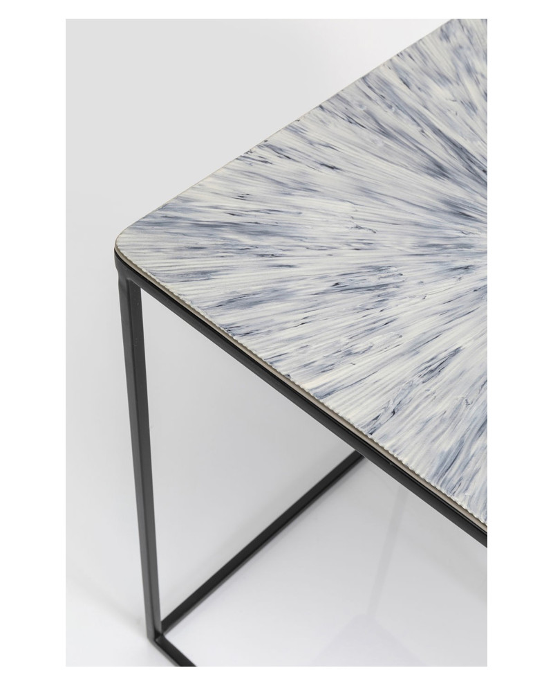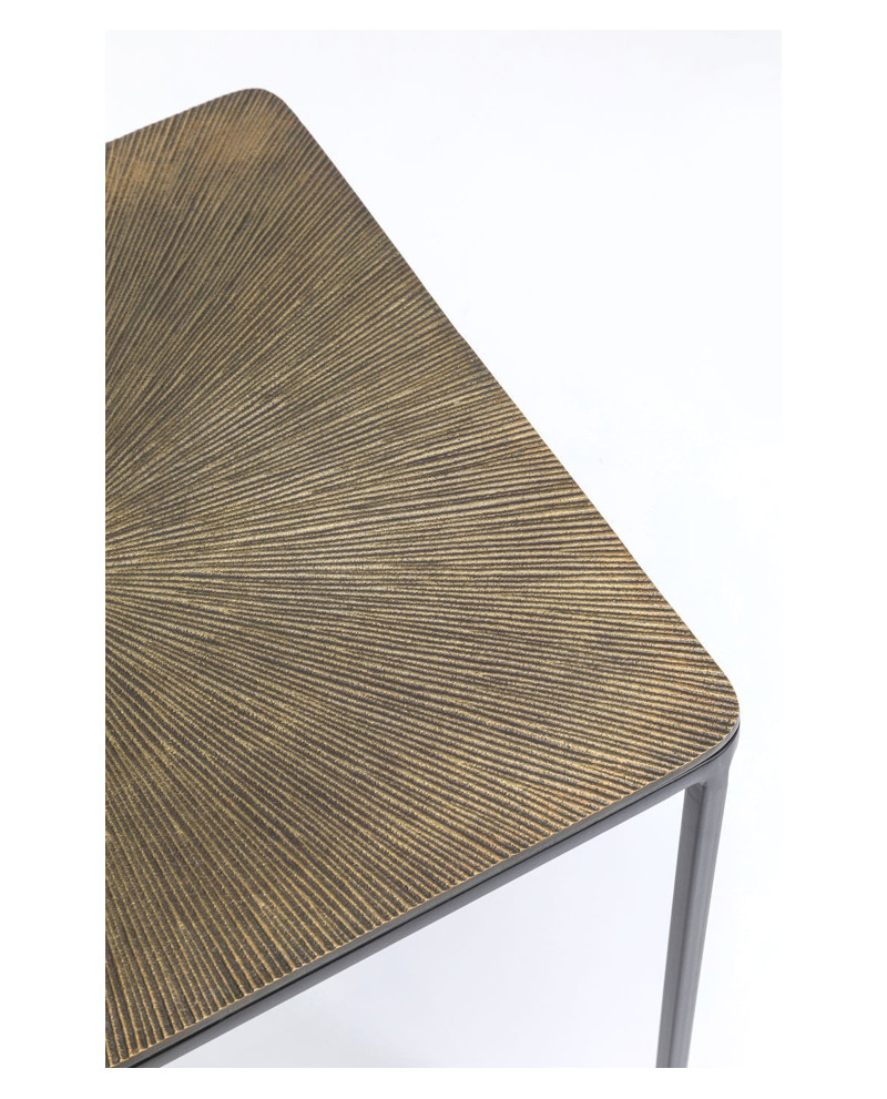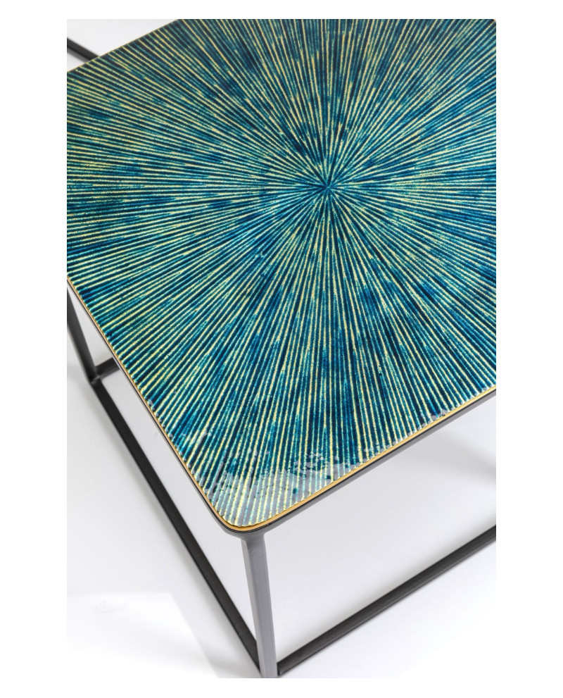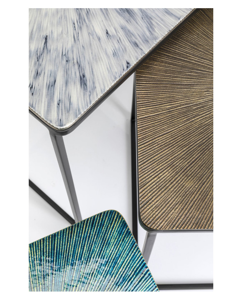 Distinguez-vous en adoptant ce set de 3 tables d’appoints carrées gigognes qui relèvent d’un style contemporain. Leur piétement minimaliste en acier poudré met en lumière les plateaux en aluminium aux motifs en rayons avec des couleurs hétérogènes pour plus d’originalité. Elles peuvent se placer ensemble et se ranger les unes sous les autres ou être séparées dans des pièces différentes.