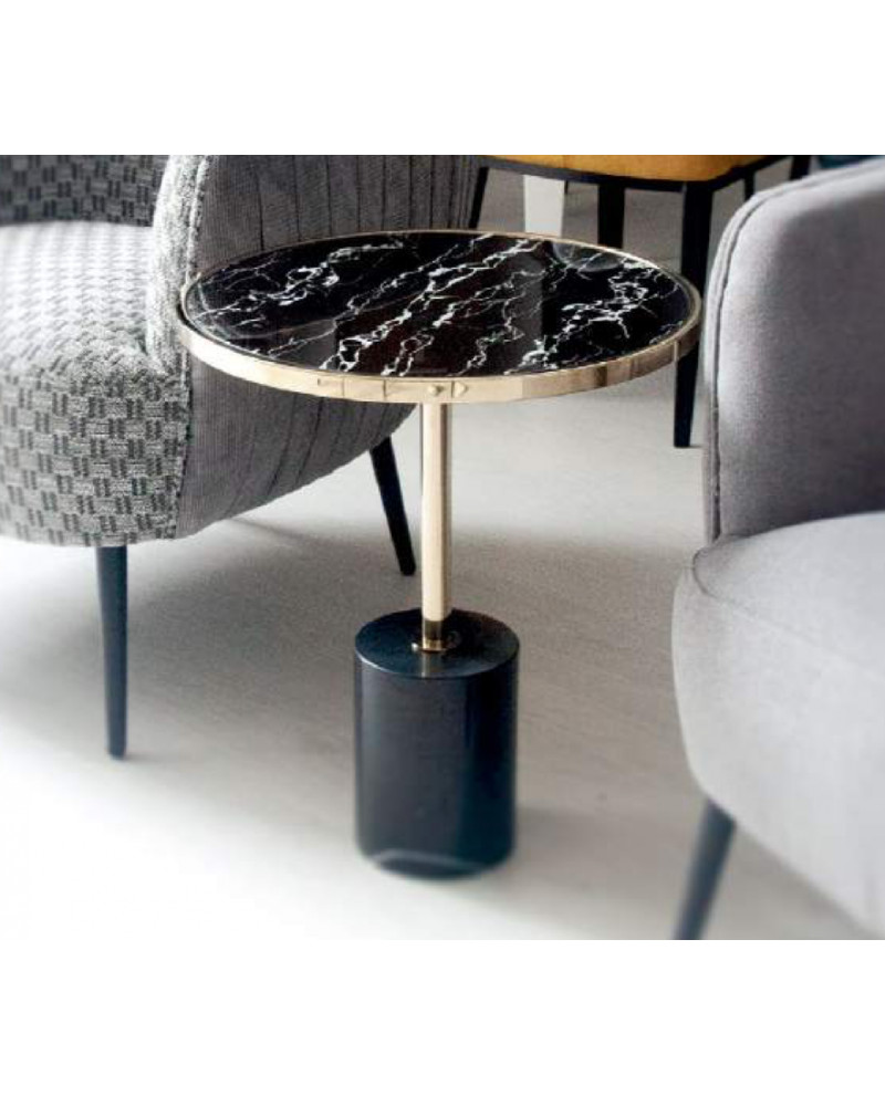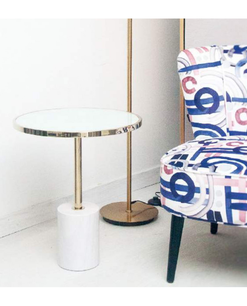 Guéridon en métal, marbre et verre trempé 5 mm.