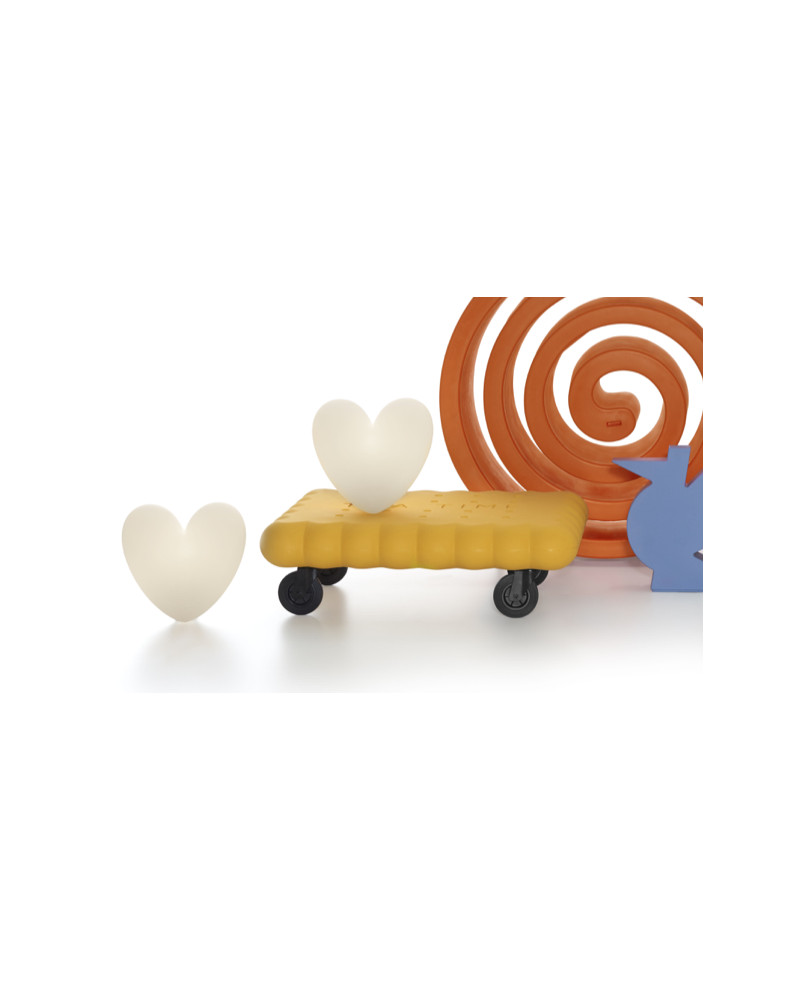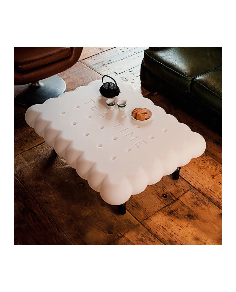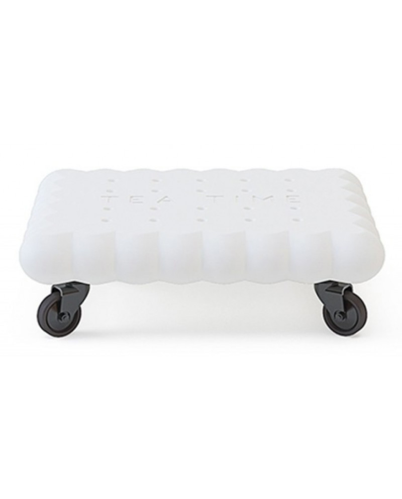 Tea Time, créé par l’architecte et designer Gianni Arnaudo, est la table basse originale et ludique aux formes stylisées d’un biscuit. L’idée de la table Tea Time dérive du trend du design lié à la nourriture, « transformant » un biscuit thé classique en un objet de design mobilier. Les pieds sont remplacés par quatre roues pivotantes à 360 degrés qui permettent de déplacer facilement la table.