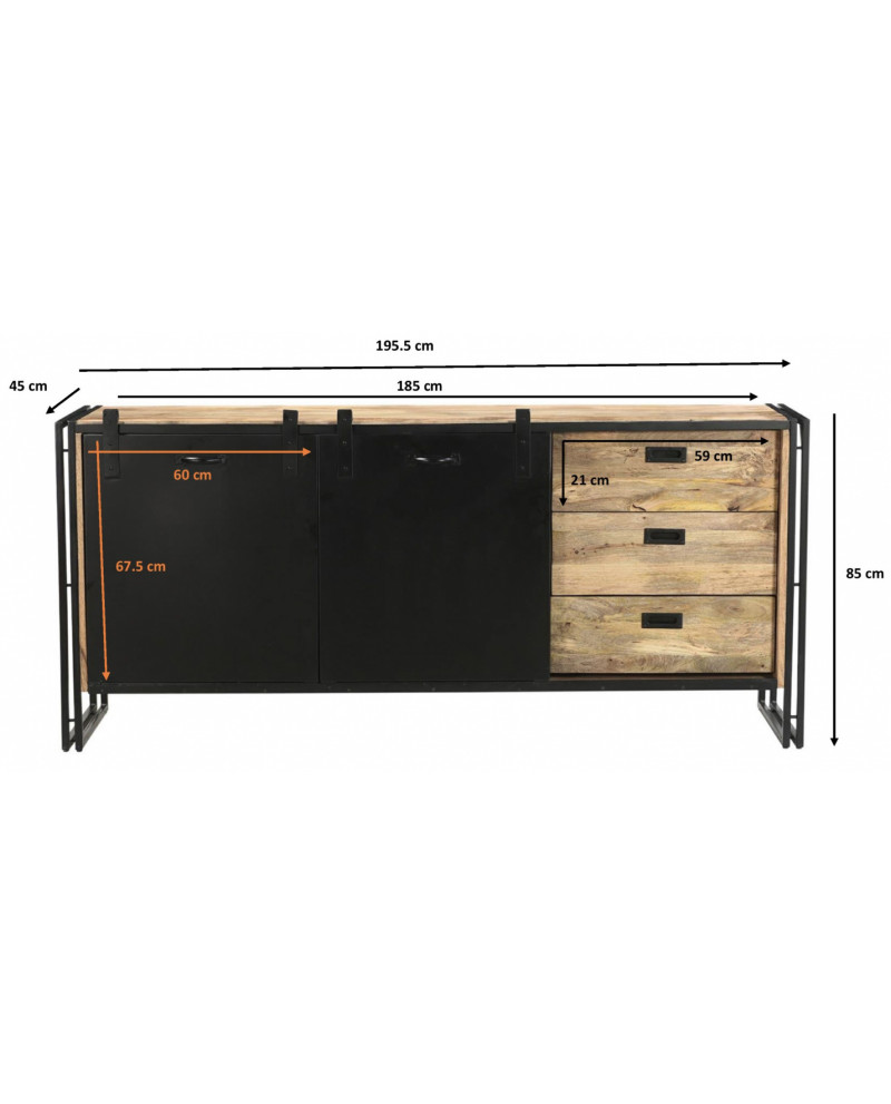 Buffet en bois de manguier et fer