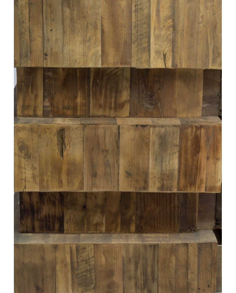 Ce meuble d'appui en bois recyclé, d'une hauteur de 100 cm, est idéal pour un intérieur au style industriel ou vintage. Fabriqué en pin avec une finition bois naturel vieilli, chaque pièce est unique grâce aux irrégularités naturelles du bois recyclé. Ce meuble apporte du caractère et de l'authenticité avec ses traces de vies antérieures. Solide et fonctionnel, il est parfait comme meuble d'appoint dans un salon ou une entrée. Dimensions : H100 x L65 x P60 cm.