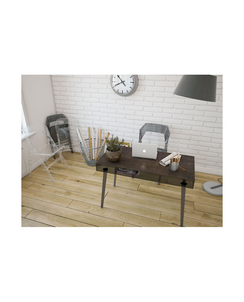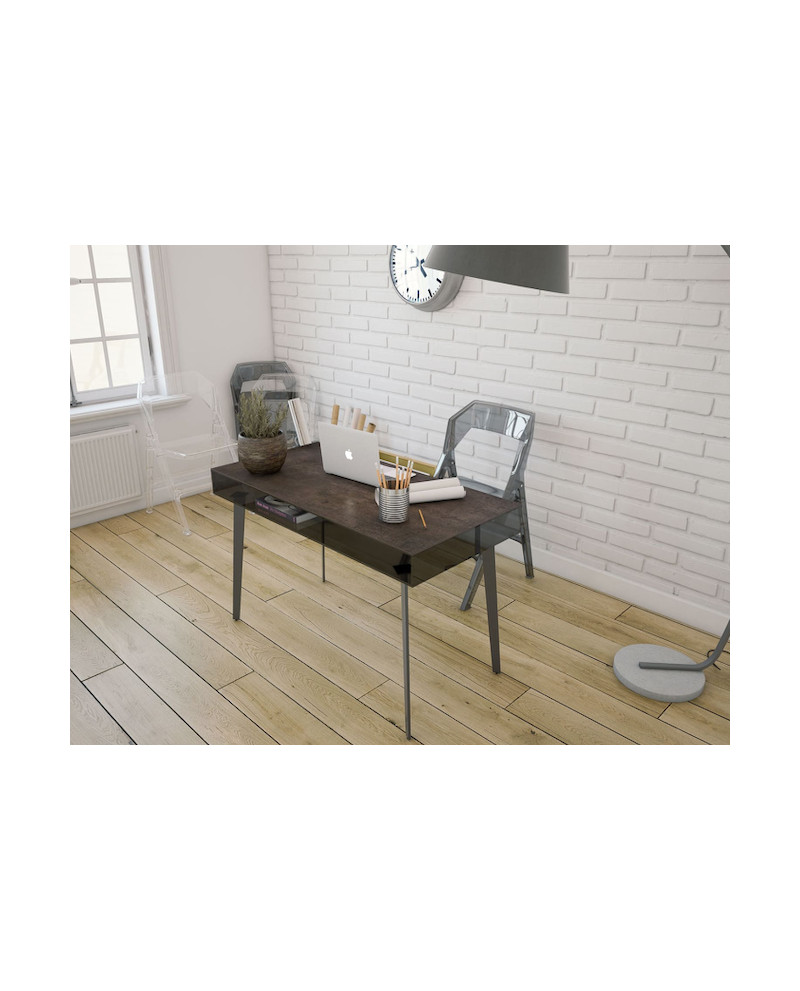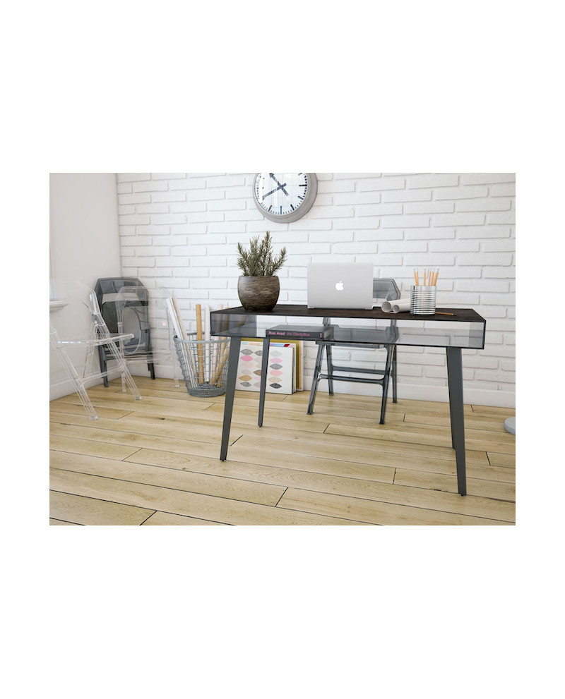 Le bureau Boston de chez Akante est composé d’une structure en verre gris fumé de 10 mm d’épaisseur. Les pieds sont effilés et élégants. Ils sont en acier laqué noir et vissés sur la structure du bureau grâce à des platines métalliques. Le plateau supérieur est en céramique de 3 mm collée sur un vitrage de 8 mm. La céramique rend ce bureau résistant à l'usure quotidienne que peuvent connaître les bureaux en verre. Son design est unique. Le bureau Boston ne manquera pas d'étonner votre entourage si vous le mettez dans votre séjour.