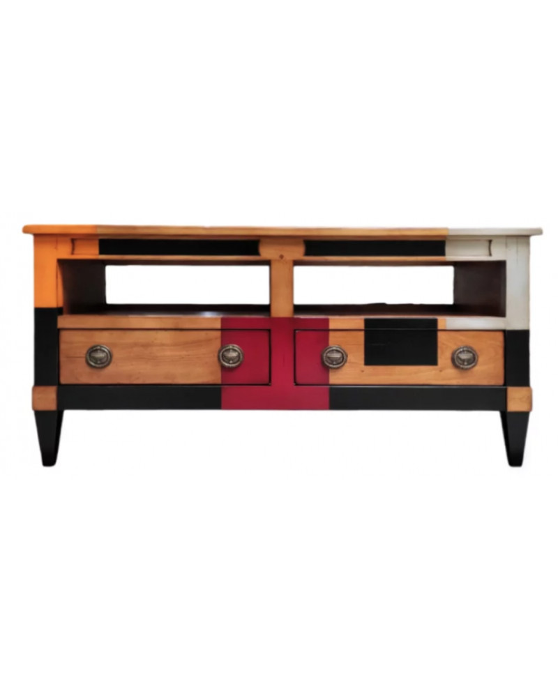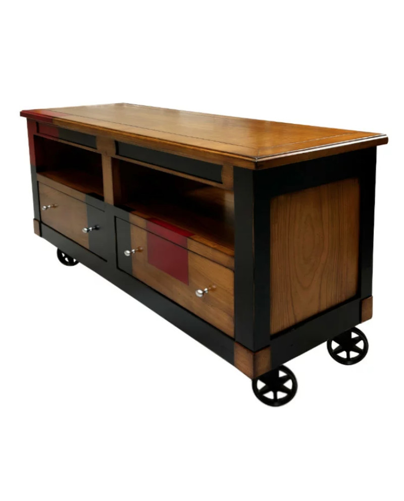 4) Roulettes - Merisier Doré - Noir - Rouge Écarlate