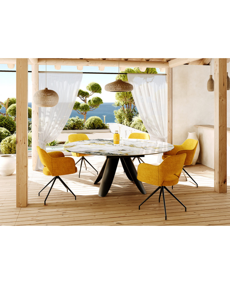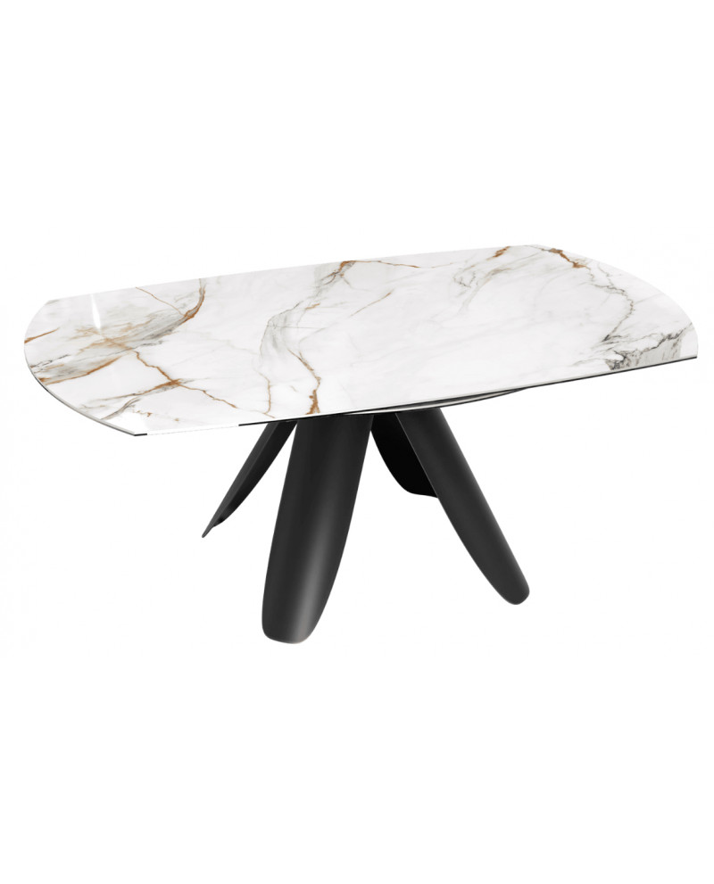 Inspirée du modèle Grande Austin, la table Grande Ajaccio combine fonctionnalité et modernité. Son plateau extensible est conçu en céramique Marbre Marquina de 6 mm, collée sur un verre de 8 mm. Grande Ajaccio s’ouvre en un clin d'œil grâce à un mécanisme synchronisé breveté Akante. Accueillez jusqu’à 12 personnes autour. Son piétement est en acier laqué noir mat, conçu en forme de pétales sa silhouette est moderne et contemporaine.
