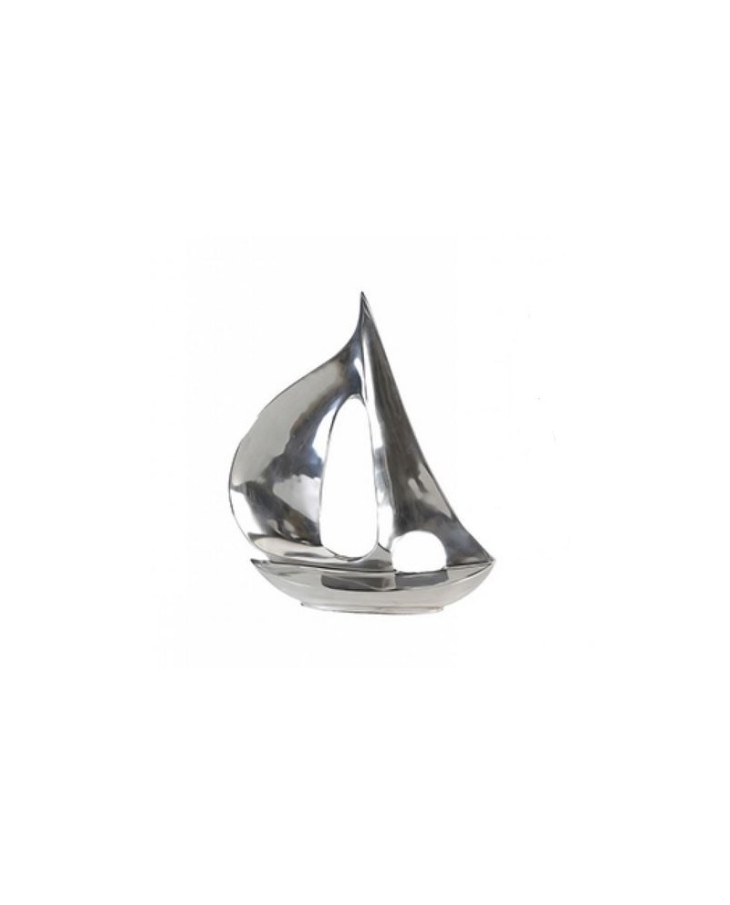 Bateau design en aluminium poli. Dimensions: H35 cm.