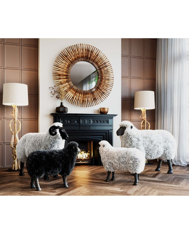 Très beau mouton en polyrésine et laine synthétique 100% polyester.
