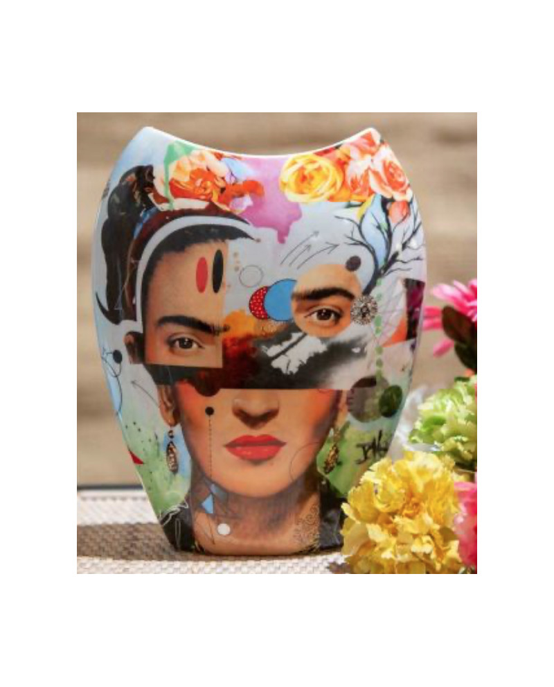 Ce vase en porcelaine emmaillé est signé par un artiste australien, du nom de Loui Jover. Il reprend le collage *Kahlo Analytica*, rendant hommage à l'icône Frida Kahlo. Cette œuvre créative inspire la modernité, grâce à un savant mélange de gouache, de déconstruction, et de formes géométriques. Son beau coffret aux couleurs vives en fait le cadeau idéal.