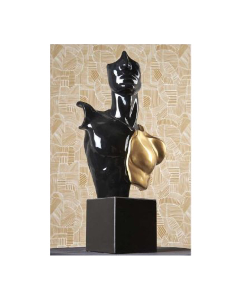 Les sculptures de la collection INITIAL sont toutes uniques et donnent vie à la décoration intérieure. Ce buste d'homme en résine noir et or dépoussière un grand classique d'inspiration antique. Très élégant, cette sculpture reste sobre et délicate. Elle fera de l'effet, où qu'elle soit installée: dans une entrée, un couloir, un bureau,..