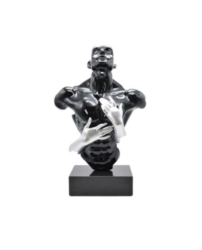 Les sculptures de la collection INITIAL sont toutes uniques et donnent vie à la décoration intérieure. Ce buste d'homme en résine noir et or dépoussière un grand classique d'inspiration antique. Très élégant, cette sculpture reste sobre et délicate. Elle fera de l'effet, où qu'elle soit installée: dans une entrée, un couloir, un bureau,..