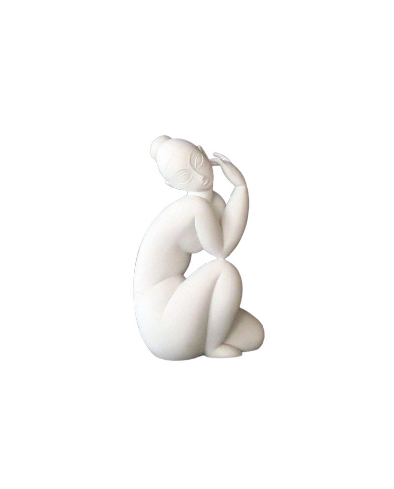 Statuette "Nue féminin 1913-1915" femme assise en pierre blanche H 23 cm.