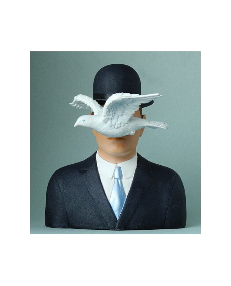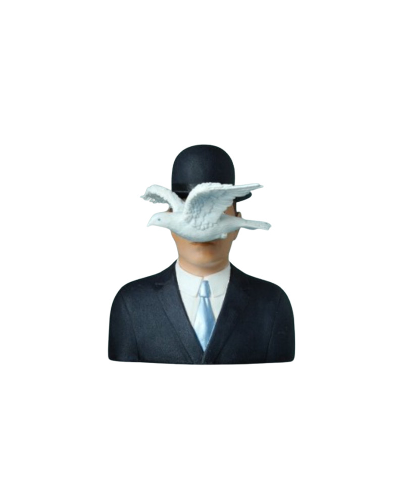 Statuette "L'homme au chapeau melon" en résine H 16 cm.