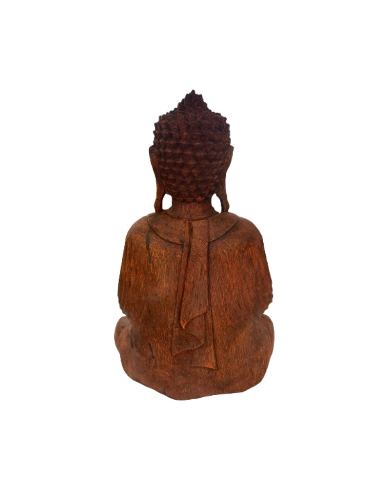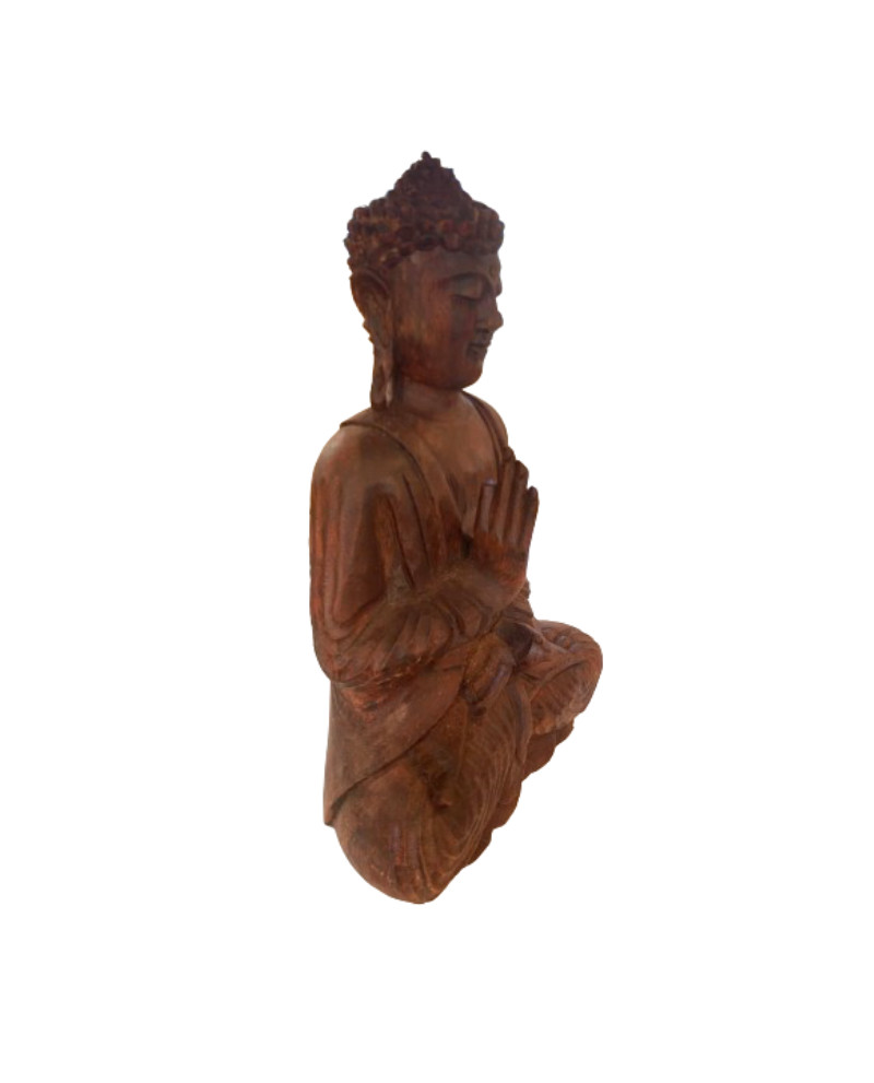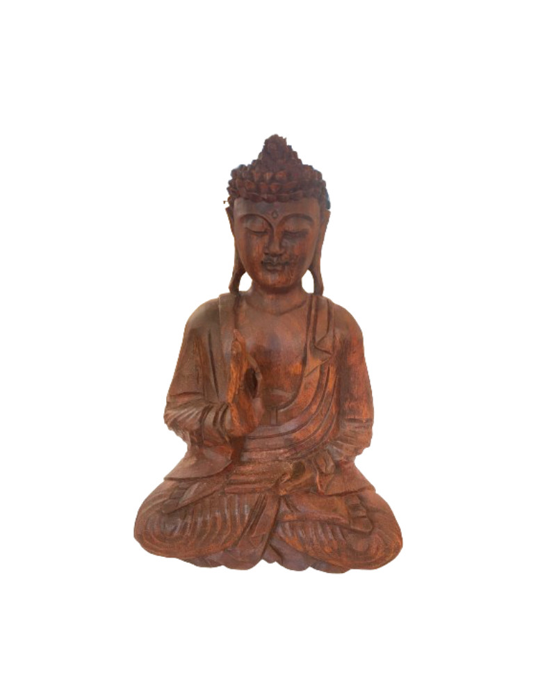 Sculpture bouddha assis en bois de manguier