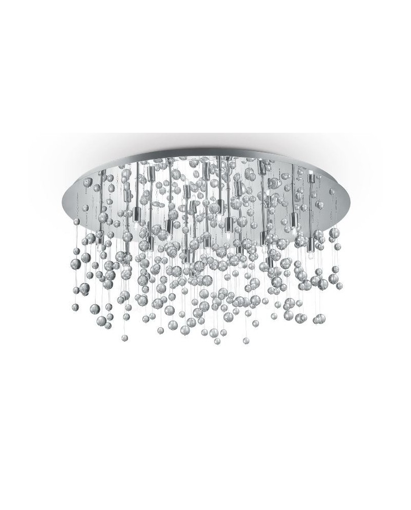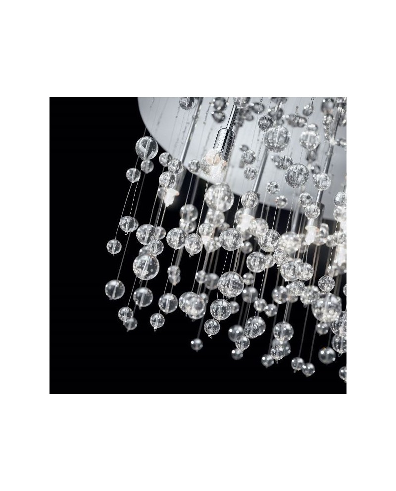 Éléments décoratifs avec sphères en verre fixées à des fils en nylon, monture chromée et sphères transparentes