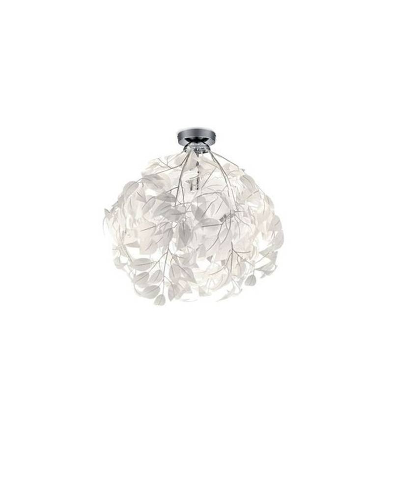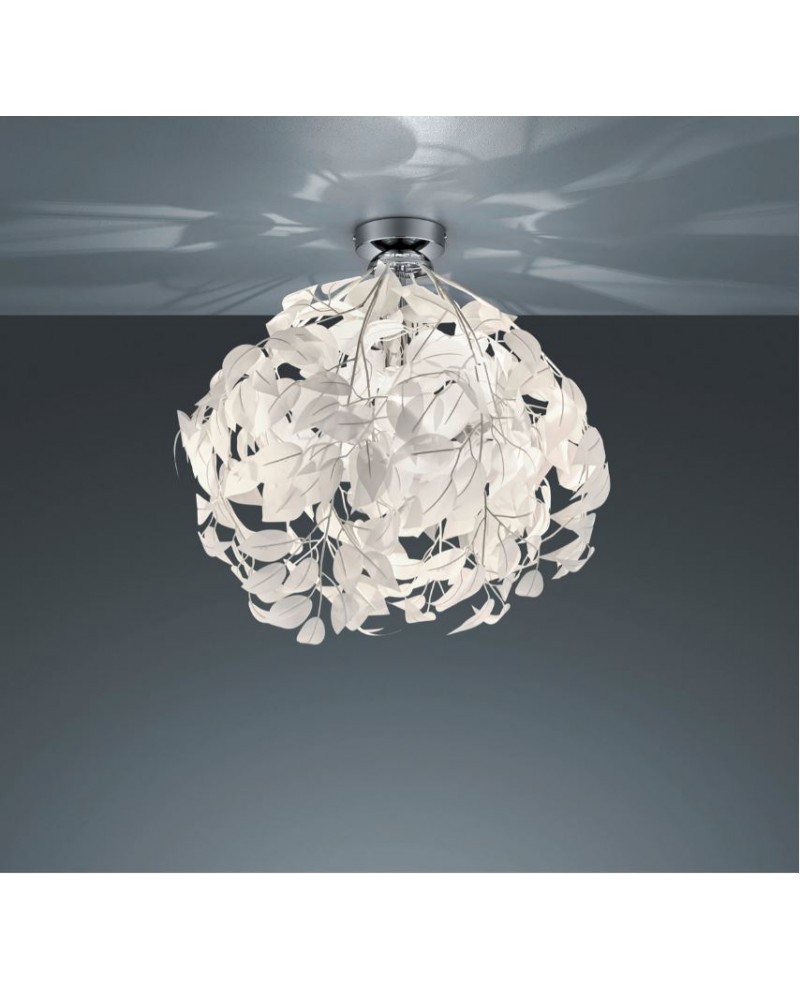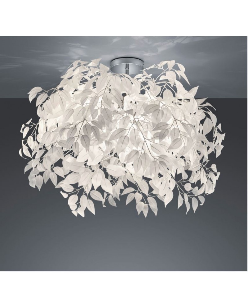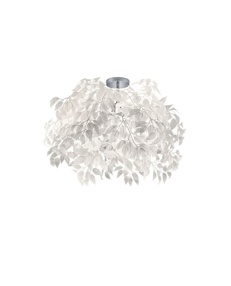 Structure en métal chromé, feuillage pvc blanc, interrupteur cordon