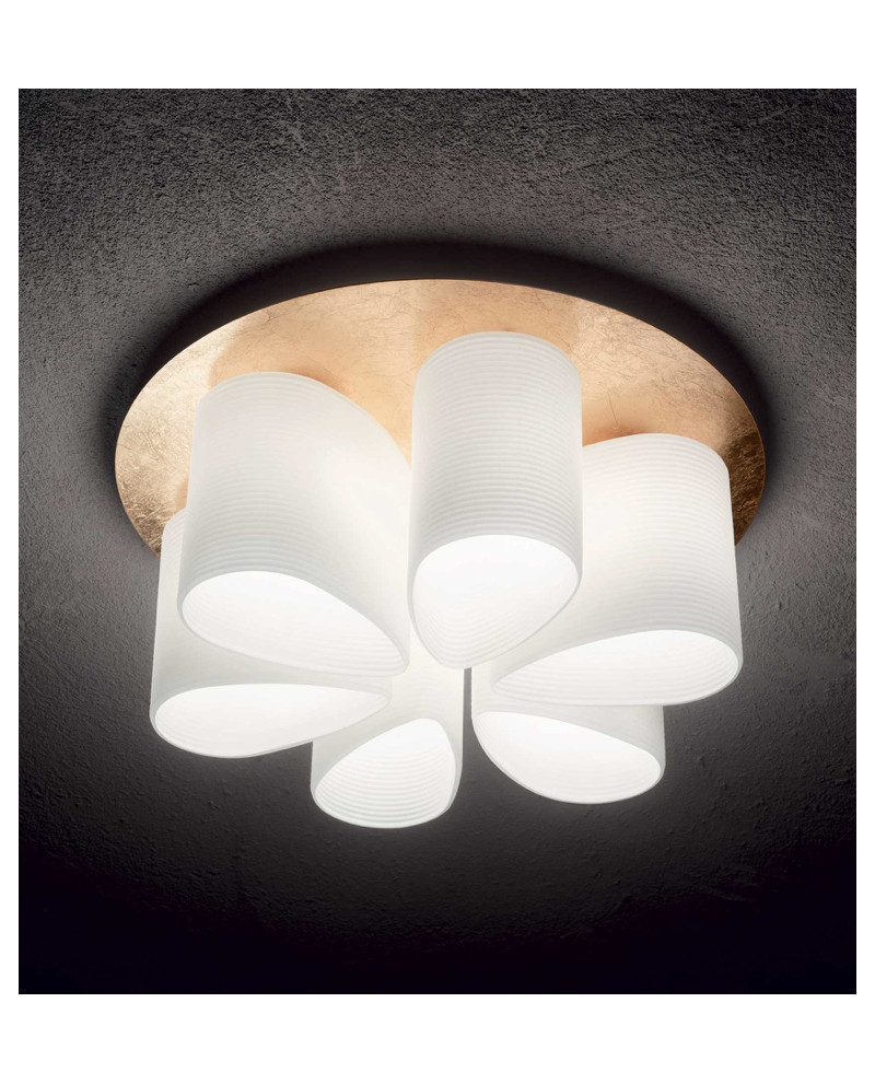 Diffuseurs en verre soufflé blanc dépoli à l'acide avec lignes en relief.