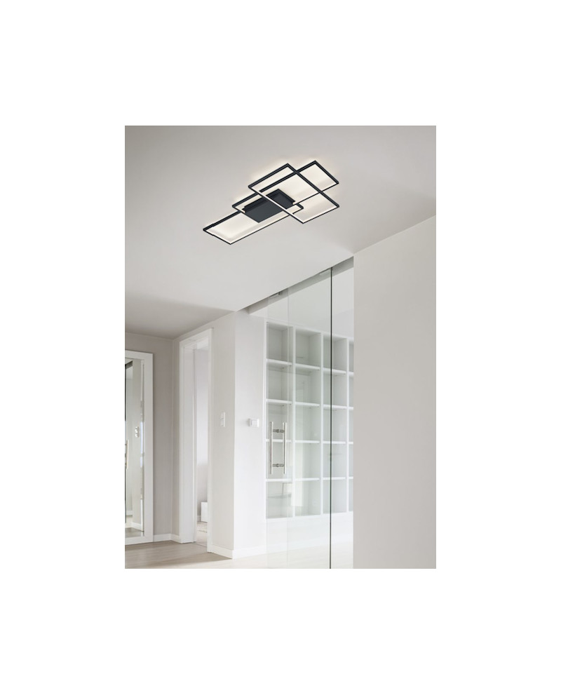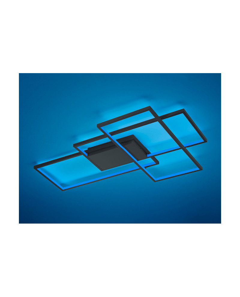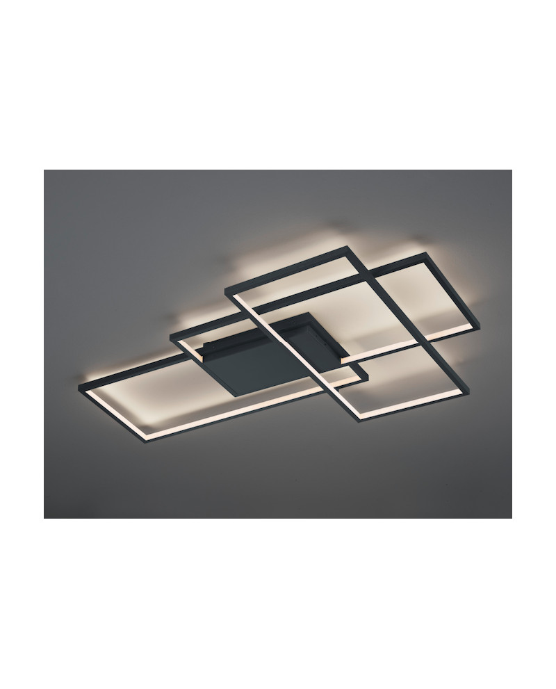 Connectez votre lumière ! Le plafonnier THIAGO offre un éclairage innovant, flexible et intelligent. Le luminaire WiZ offre un incroyable spectre de couleurs de 16 millions de couleurs et 64 000 tons blancs. Réveillez-vous avec la douce lumière du soleil, commencez votre journée plein d'énergie, détendez-vous avec une lumière apaisante ou transformez la nuit en jour - simplement via l'application. Par rapport à d'autres fournisseurs de maisons intelligentes, les luminaires WiZ ne nécessitent pas de passerelle supplémentaire, de sorte que tous les luminaires peuvent être commandés de manière totalement flexible à partir d'un appareil mobile. En outre, les luminaires peuvent être combinés avec Amazon Alexa ou Google Home, de sorte que le fonctionnement par commande vocale est possible. Différents programmes d'éclairage et réglages peuvent également être sélectionnés avec la télécommande fournie ou à l'aide de l'interrupteur d'éclairage. Un autre avantage est la flexibilité d'utilisation : Les lampes WiZ peuvent ainsi être commandées par plusieurs utilisateurs, affectées à différentes pièces ou emplacements et contrôlées de n'importe où. La composition de trois rectangles filigranes crée un luminaire moderne pour le salon ou l'entrée. Le plafonnier est conçu en anthracite et peut être facilement intégré dans des schémas de couleurs existants. En outre, le luminaire est équipé de la technologie LED moderne, qui se caractérise par une qualité de lumière élevée et une grande efficacité énergétique. Par rapport aux lampes halogènes conventionnelles, il est possible d'économiser jusqu'à 80 % des coûts énergétiques. En outre, les sources lumineuses LED ont une longue durée de vie, produisent moins de chaleur et protègent l'environnement.