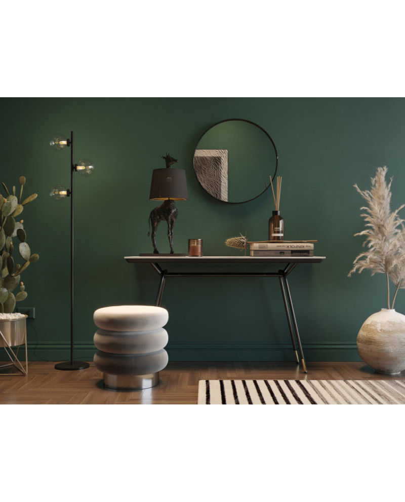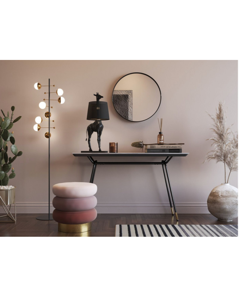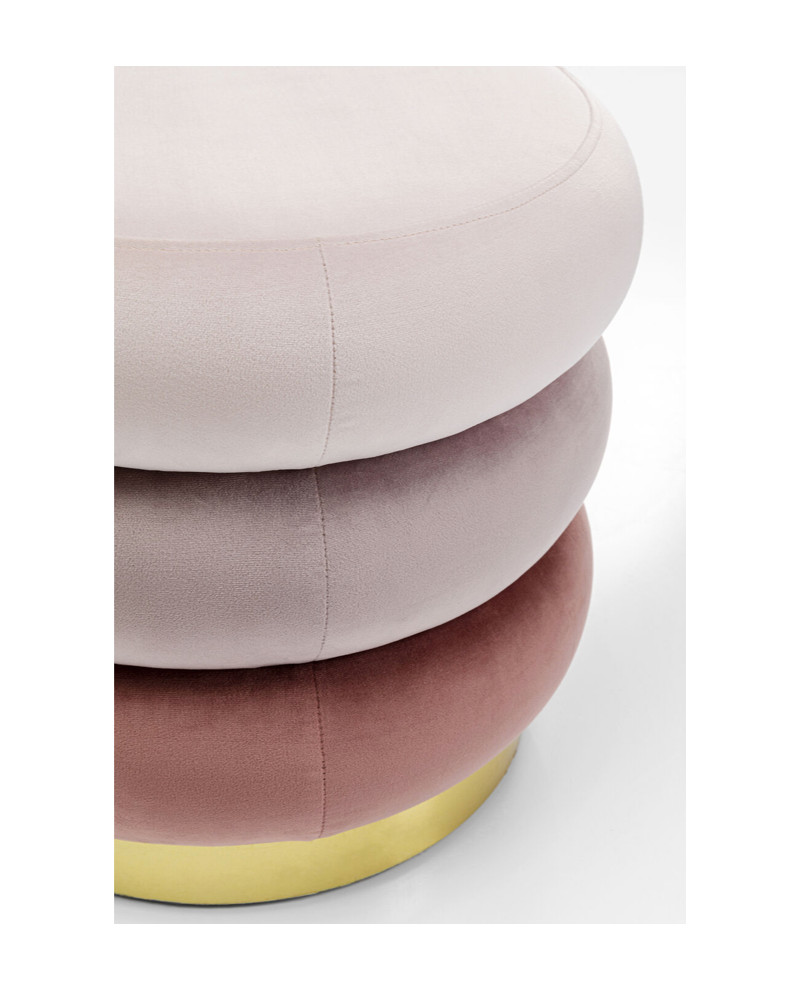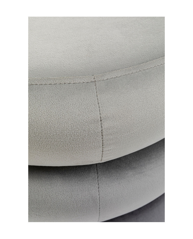Un favori des stylistes : un élégant pouf rond en velours aux couleurs pastel qui apporte instantanément une touche chic à n'importe quelle pièce.