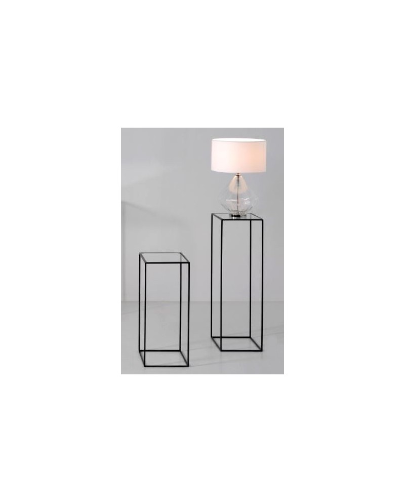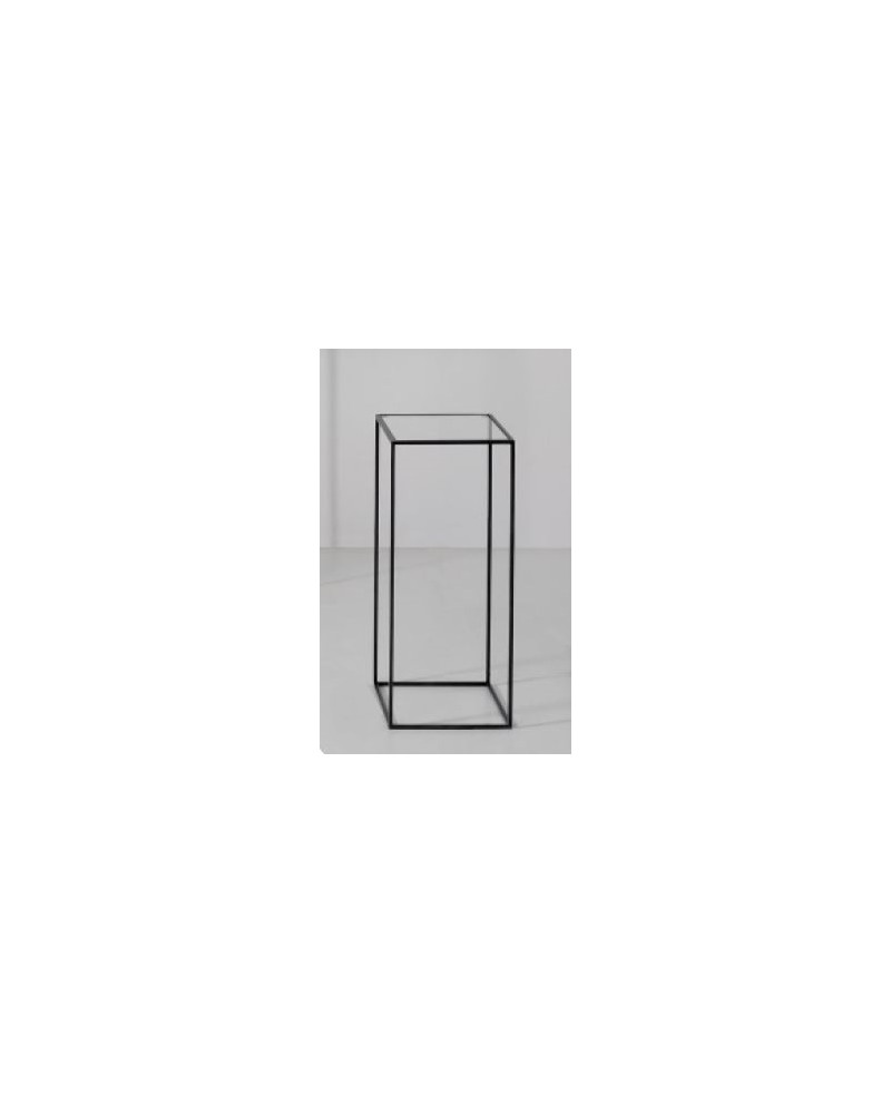 Jolie petite sellette épurée en métal gris anthracite, tablette en verre trempé.
