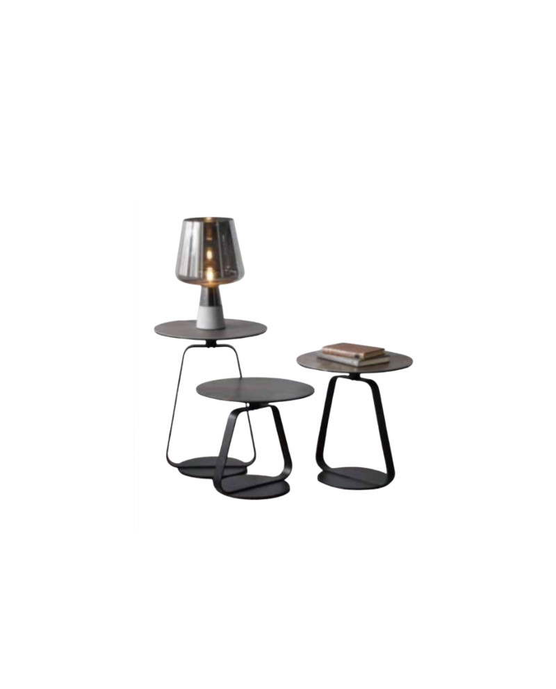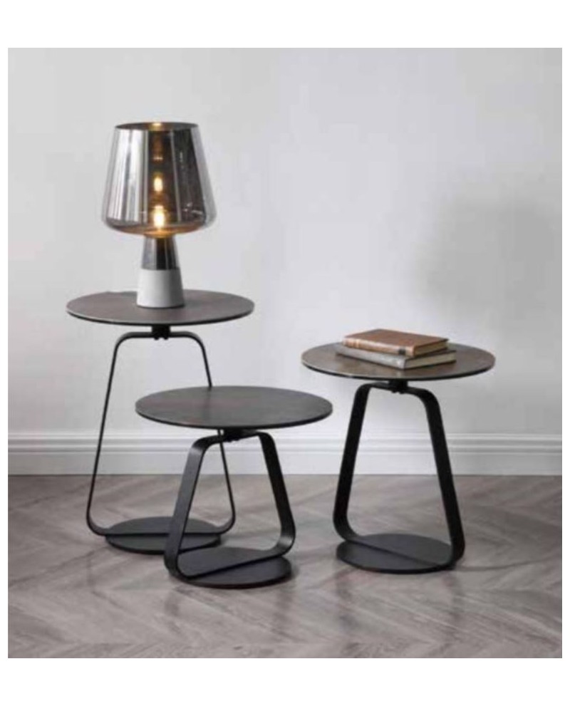 Piètement en métal laqué époxy noir, dessus en céramique épaisseur 3mm collé sur verre 6mm