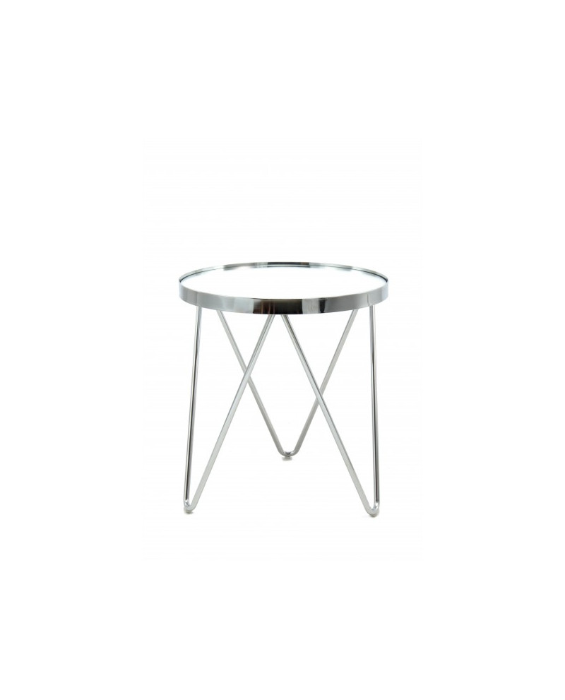 Table d'appoint / guéridon tripode, structure inox, plateau verre miroir.