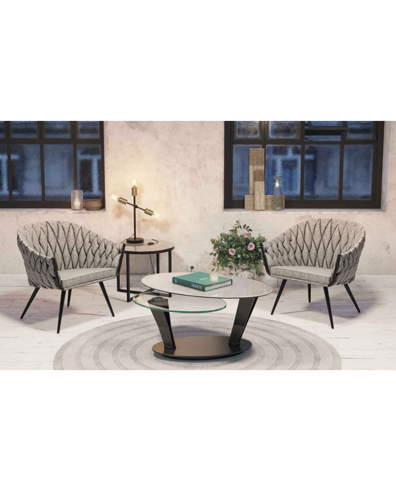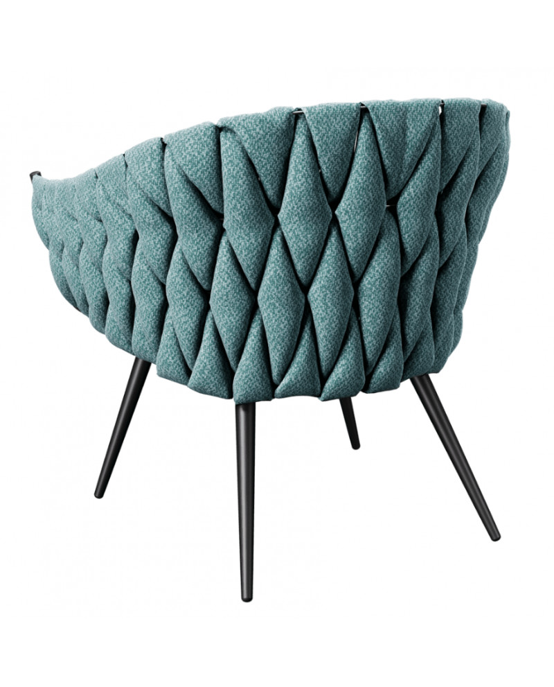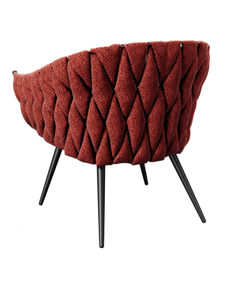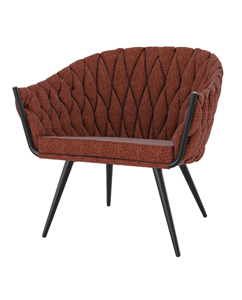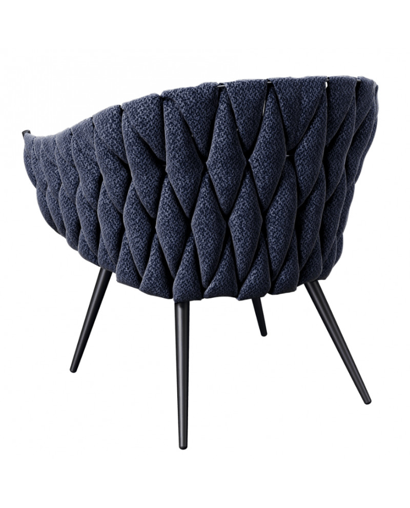 Fauteuil de table avec une structure en acier, sur laquelle est tressé un tissu épais en polyester.