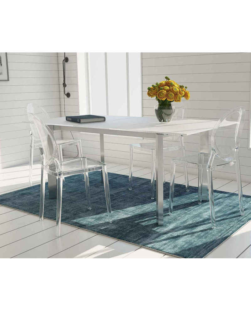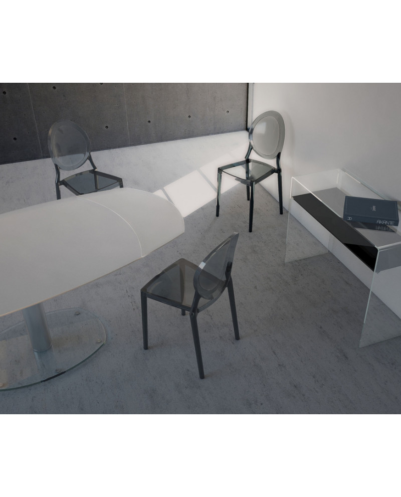 La chaise LAFAYETTE est excentrique. Elle est originale et bien proportionnée. La chaise LAFAYETTE en polycarbonate est stable et solide. Son polycarbonate transparent la rendra discrète dans n'importe quel environnement, classique ou contemporain. Hauteur d'assise : 47cm. Chaises empilables