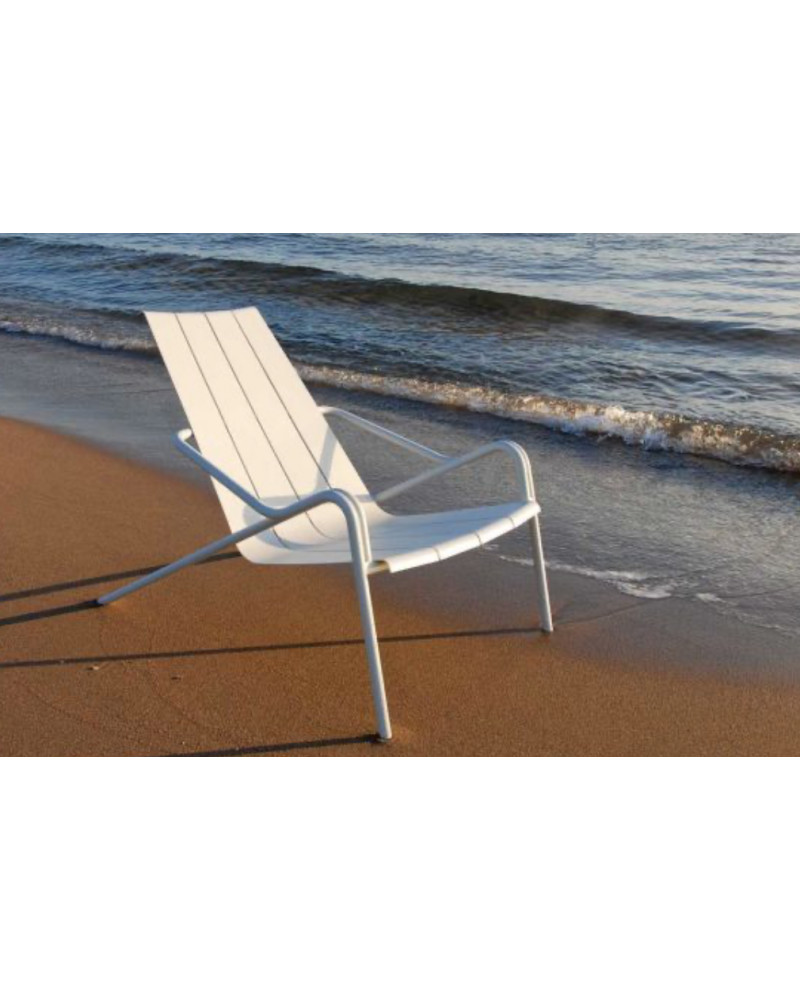Le produit emblématique de la marque EZEÏS : ce fauteuil bas, inspiré de l'adirondack, s'adapte à tous les types d'environnements. Avec son esprit de fluidité, ses lames tendues et élégantes lui confèrent un style dynamique. Il se fond aisément dans une architecture moderne ou apporte une touche naturelle à l'espace. Conçu en aluminium thermolaqué, ce meuble allie finesse et robustesse. Les meubles EZEÏS en aluminium sont particulièrement résistants à l'humidité, à la corrosion et aux conditions climatiques extrêmes, garantissant une longue durée de vie. Sa surface est non seulement résistante aux taches et aux rayures, mais aussi très facile à entretenir. De plus, ce fauteuil est empilable pour un rangement pratique, et ses pieds sont équipés de patins souples anti-rayures.