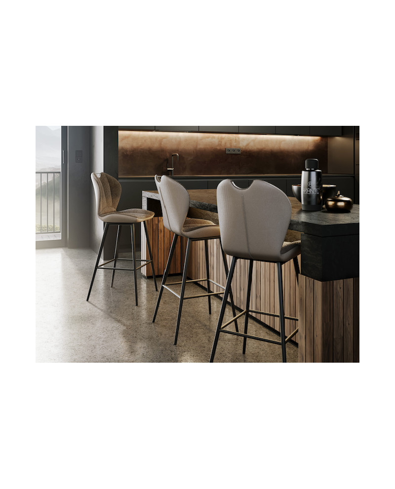 Associez le tabouret de bar New Jersey à votre intérieur pour une touche de modernité. Son design contemporain souligné par des lignes épurées, s’adapte à tous les styles. Son assise bi-matière associe un tissu Beige 100% polyester pour le siège et un revêtement Taupe en 100% polyuréthane pour le dossier. Pratique, sa poignée facilite son déplacement et son rangement. Son piétement longiligne en acier laqué noir mat apporte une touche de modernité et son repose-pied garantit une assise confortable et stable en hauteur. Ce tabouret mesure 46 cm de largeur, 51,5 cm de profondeur, 65 cm de hauteur d’assise et 97 cm de hauteur totale. Son assise est pivotante à 180° avec rappel.