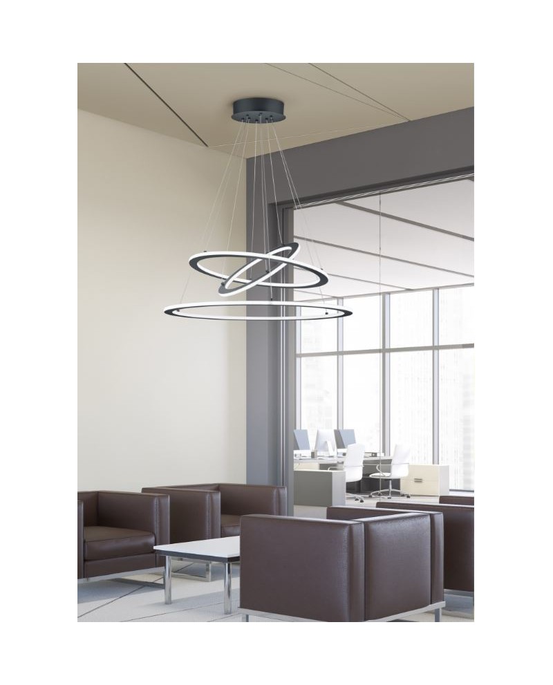 Structure 3 cercles en métal, variateur 3 positions intégrées, bande LED blanche
