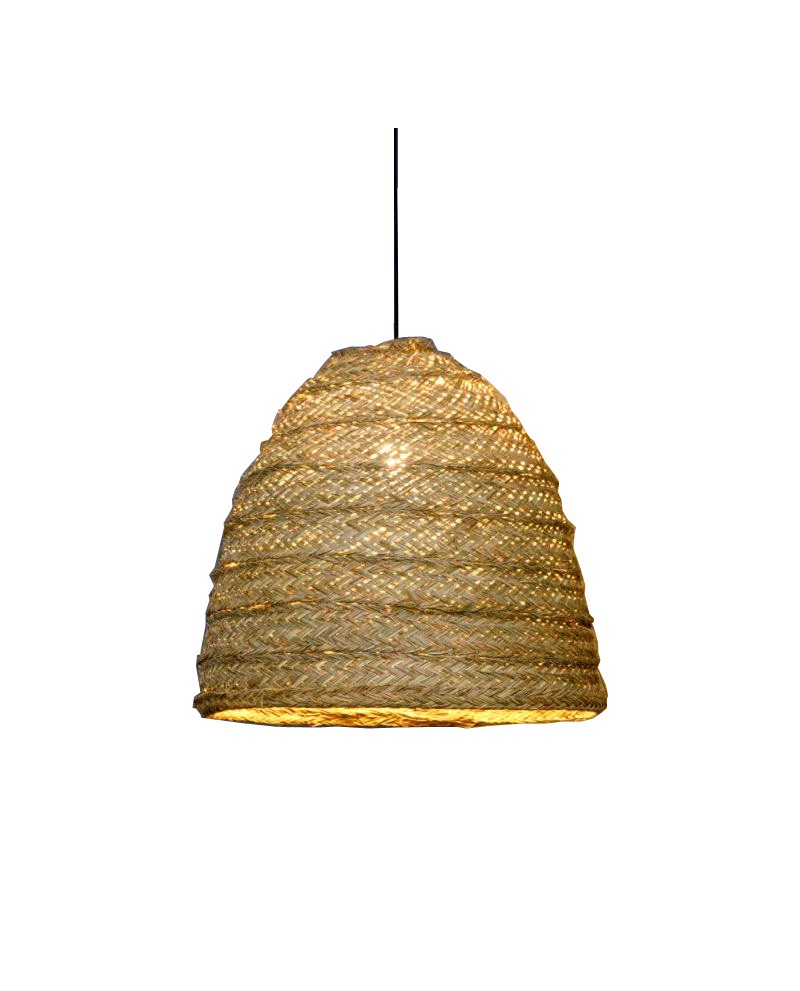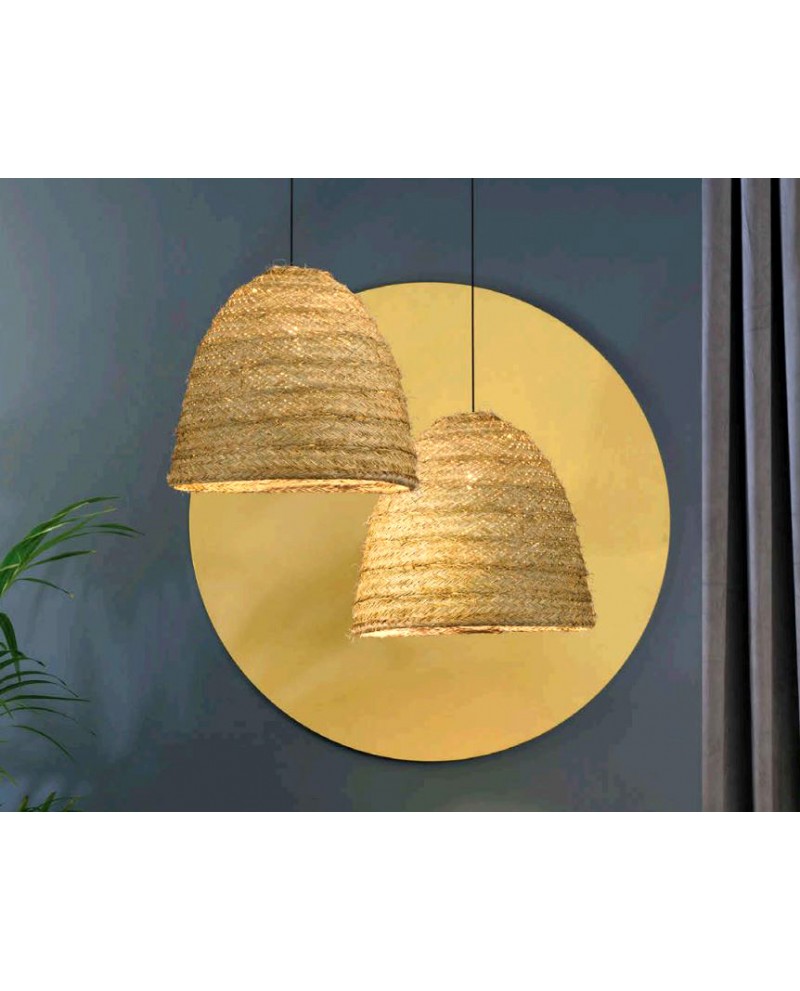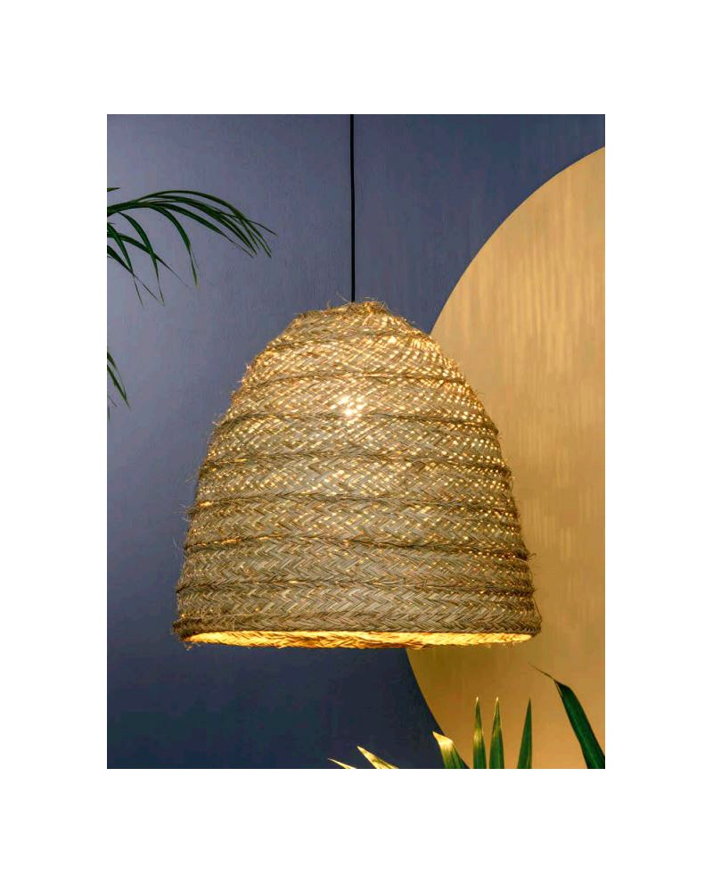 Suspension structure métal noir, revêtement raphia naturel fait main. Ampoule 1 x E27 LED A+ (non incluse)