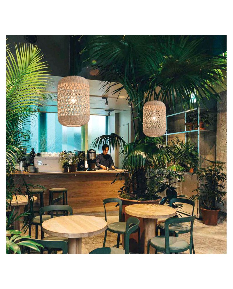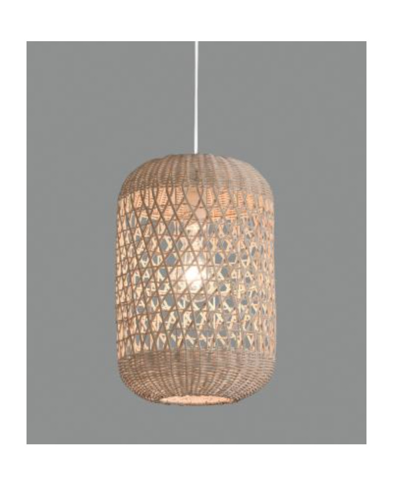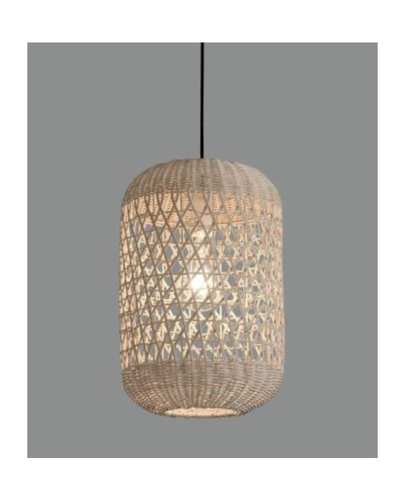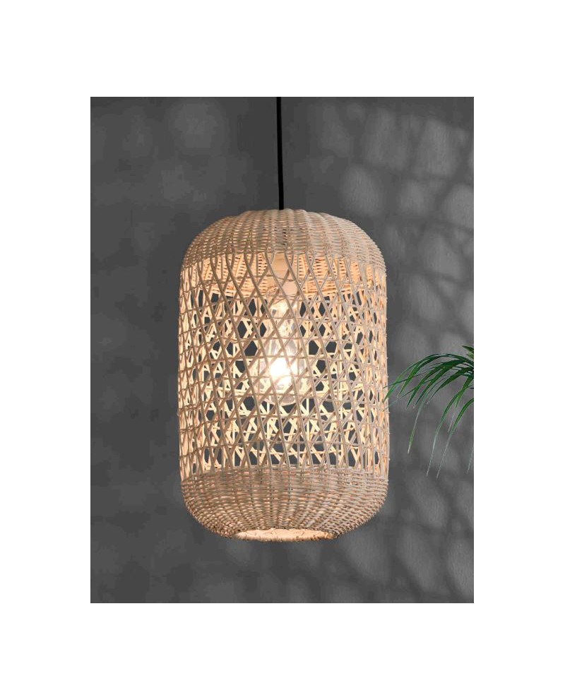 Suspension structure métal noir, revêtement fait en rotin naturel