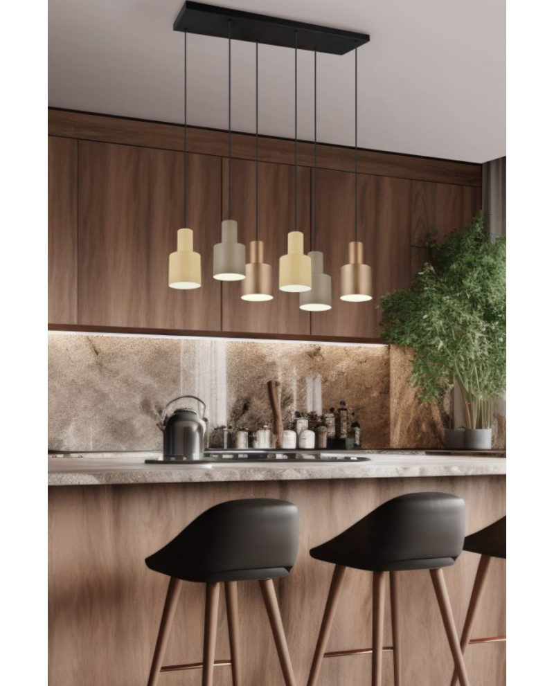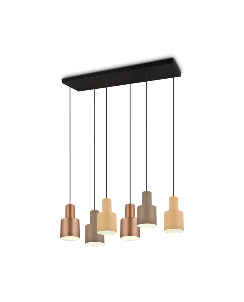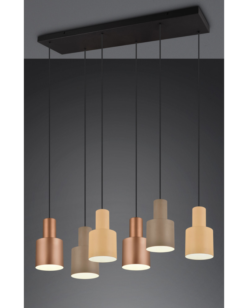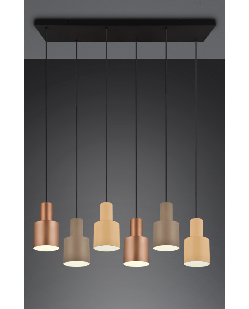 Lampe suspendue avec 6 abats-jour aux couleurs naturelles.