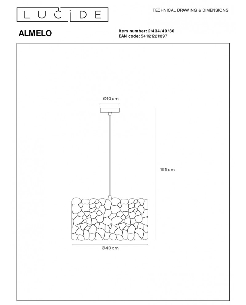 Éclairage : 1 x E27 40W (non inclus).