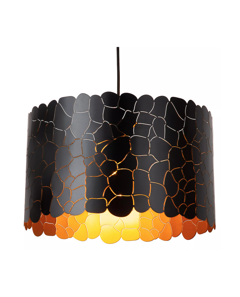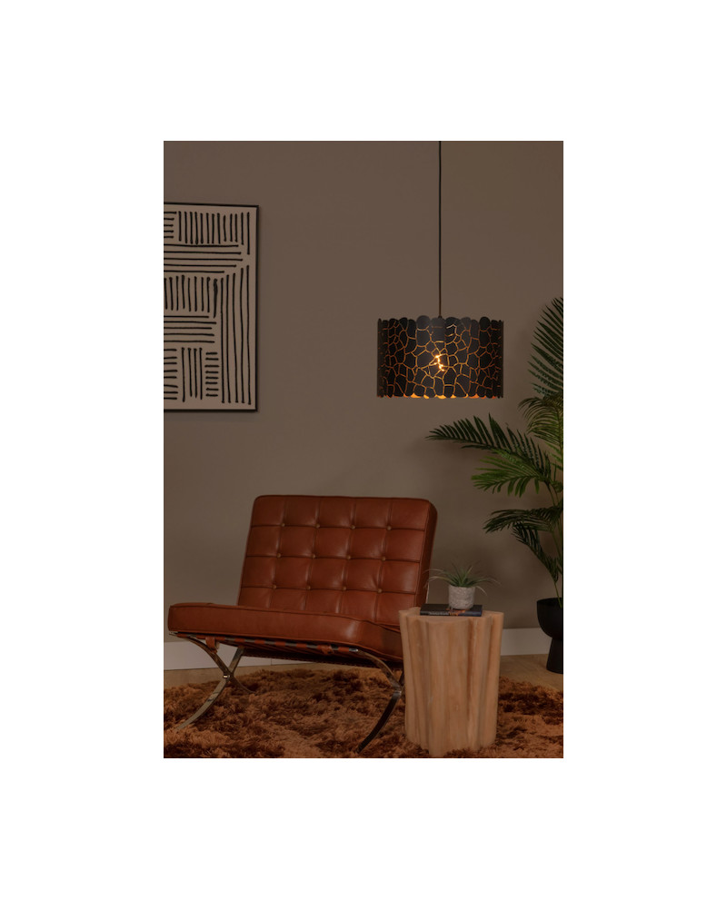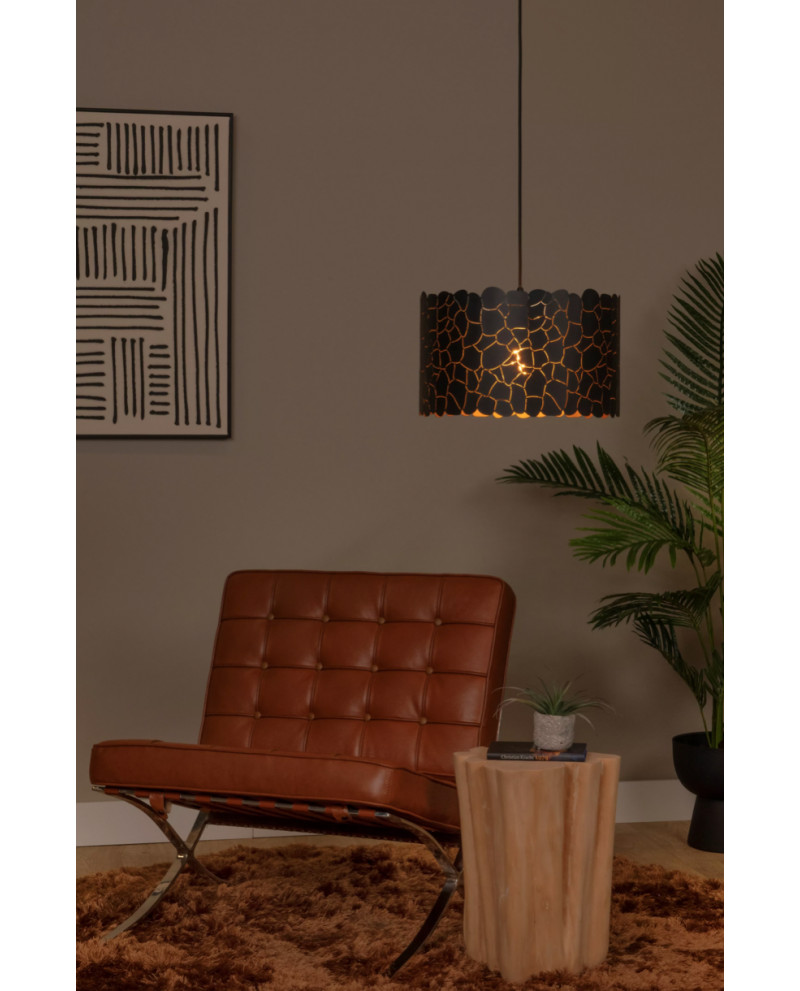 À votre table, il n'y a pas que votre compagnie qui mérite l'attention ; la suspension peut également être mise en vedette. Quoi qu'il en soit, Almelo offre l'atmosphère requise. Le grand abat-jour métallique avec un motif de girafe émet sa lumière à travers une structure délicate aux lignes épurées. L'intérieur doré de l'abat-jour crée une ambiance chaleureuse. Cette lampe suspendue est réglable en hauteur jusqu'à une longueur maximale de 155 centimètres et mesure 40 centimètres de large. Connectez la lampe à un variateur externe pour encore plus de convivialité.