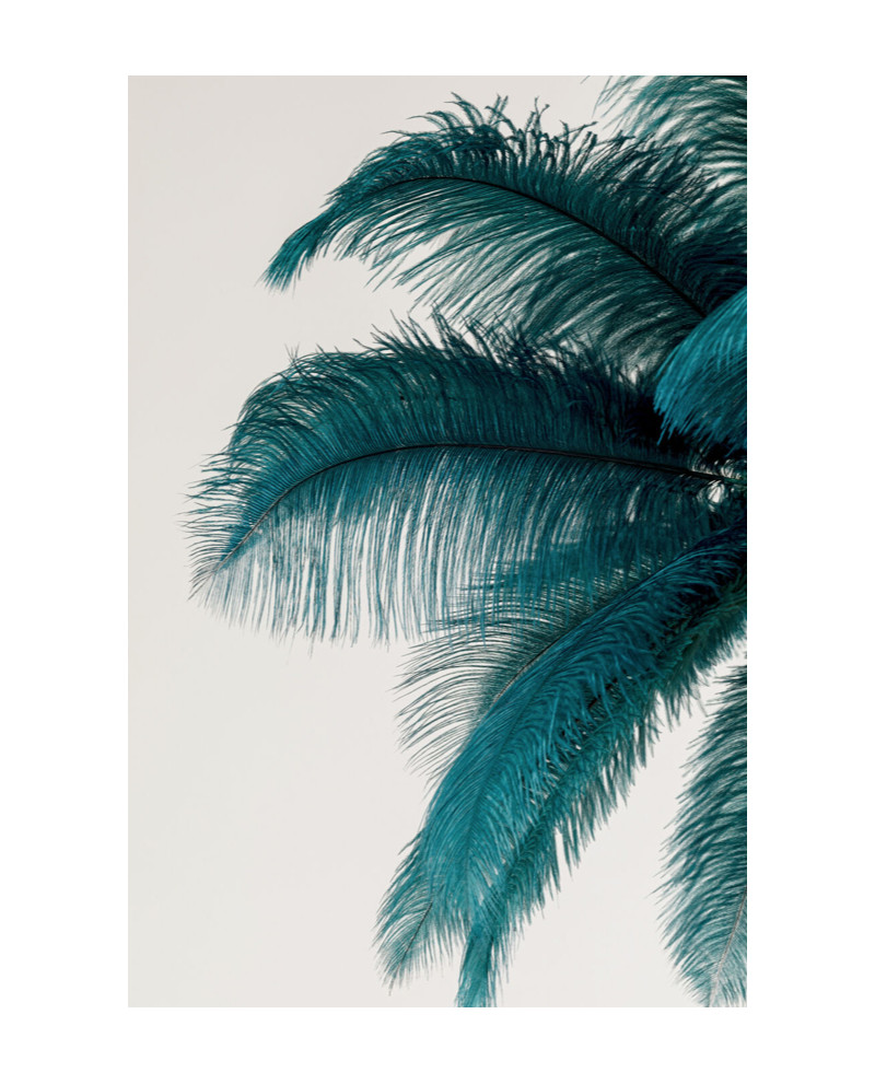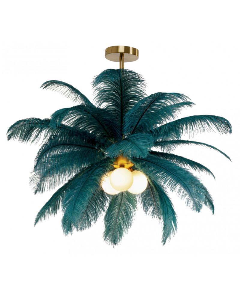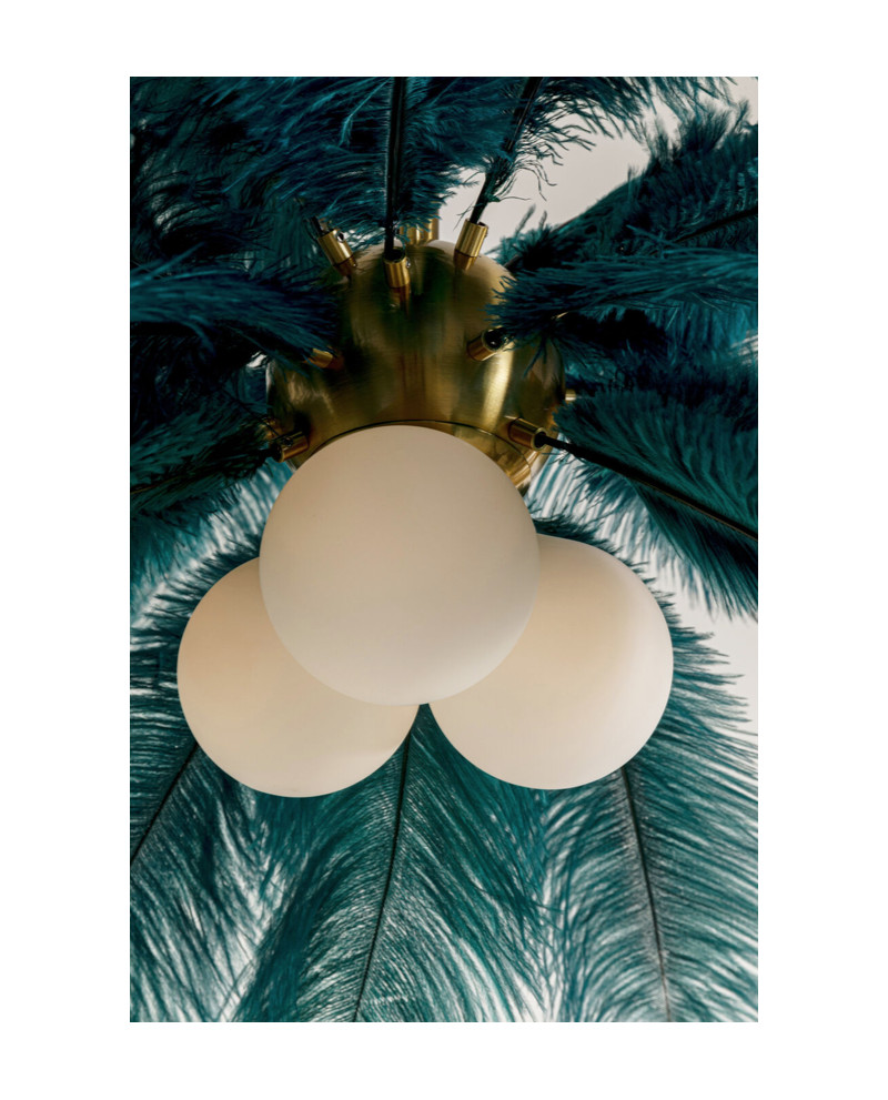 Les véritables plumes d'autruche d'un vert foncé et froid font de cette lampe un élément glamour.