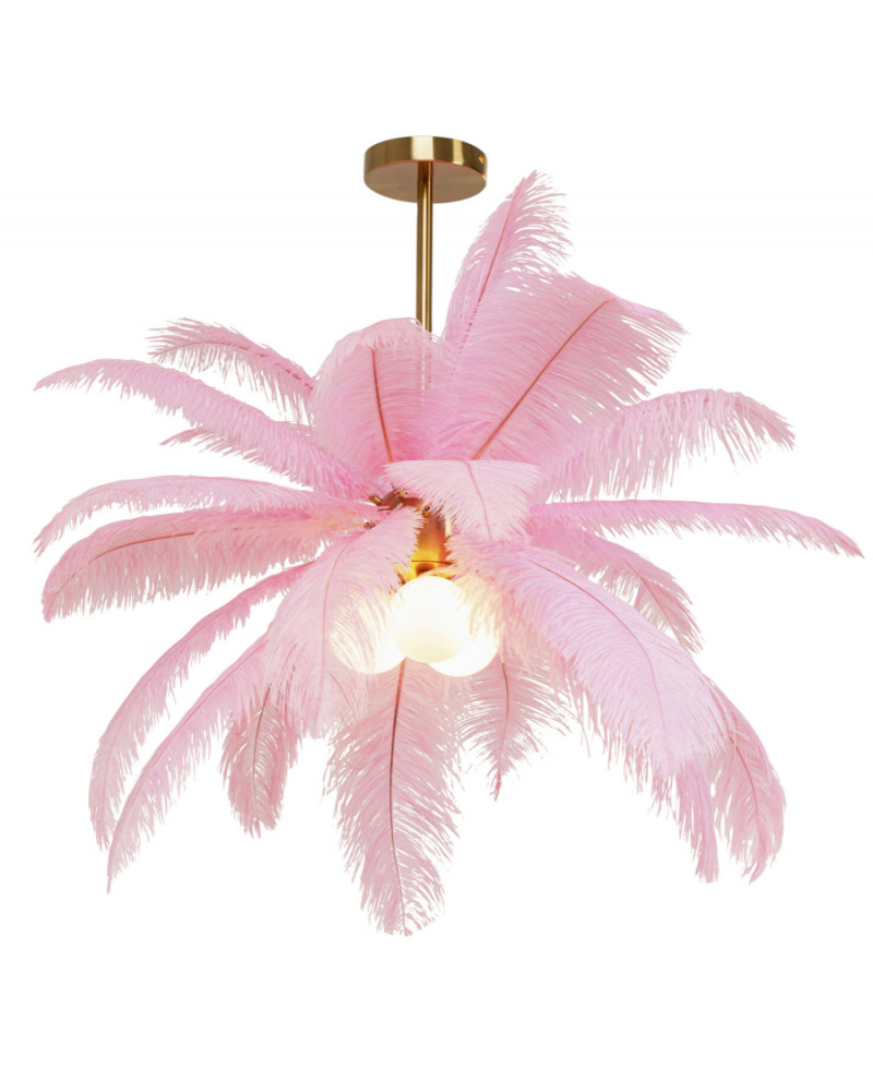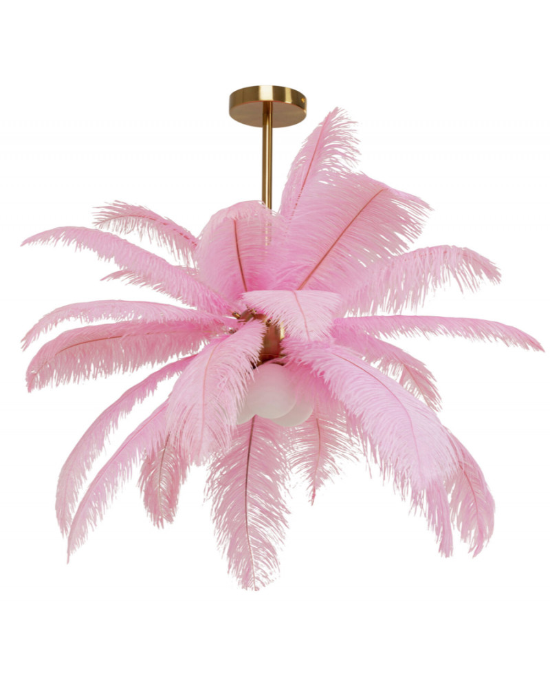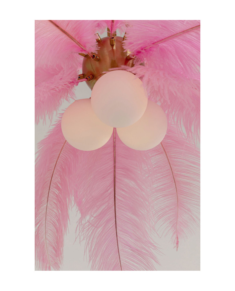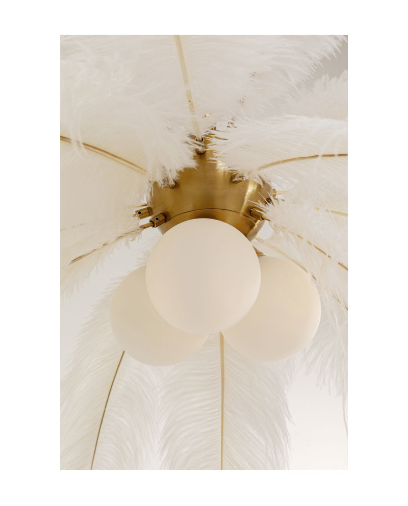 Cette suspension exceptionnelle allie ambiance tropicale et style jungle à une touche de charme glamour. Les véritables plumes d'autruche lui confèrent une touche chaleureuse et expressive, tandis que le baldaquin en laiton doré crée un effet sophistiqué et luxueux. Les plumes, délicatement mouvantes, captent la lumière et créent un fascinant jeu d'ombres. Au-dessus de la table à manger ou comme élément phare dans la chambre, ce luminaire s'intègre avec élégance dans une grande variété de styles de vie et crée une oasis de bien-être.