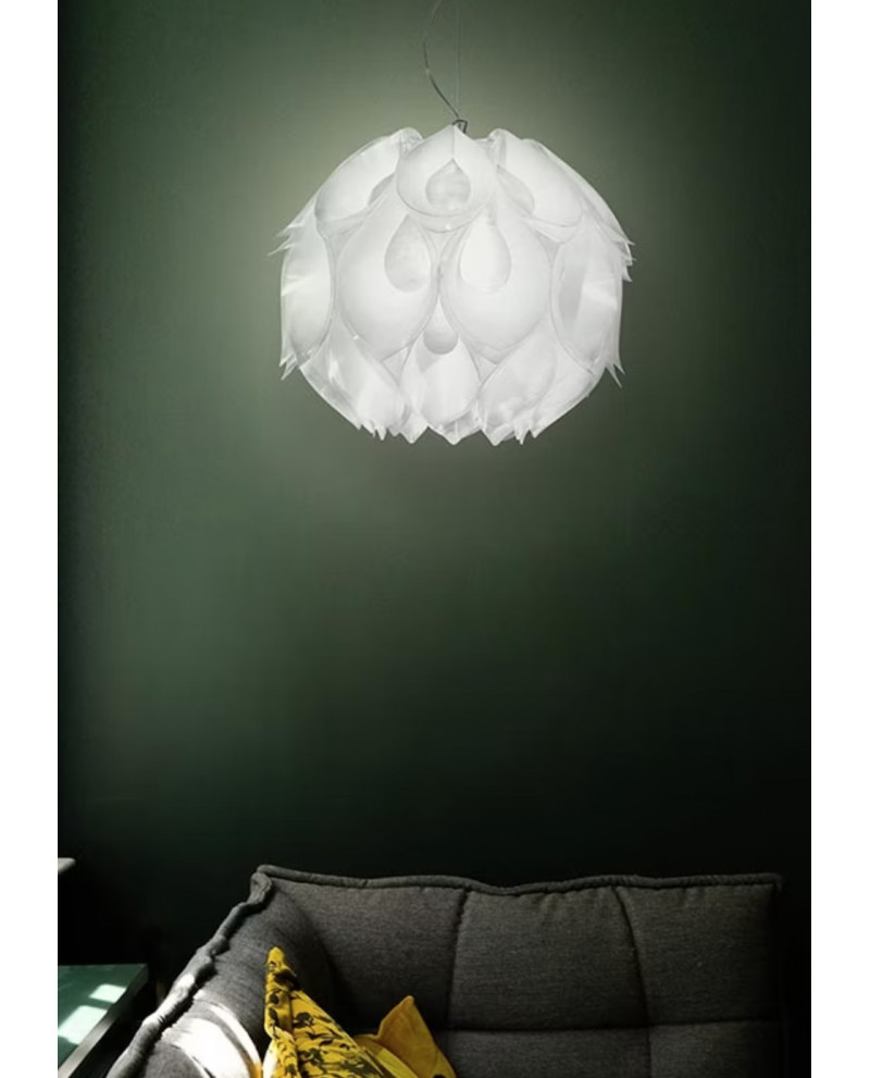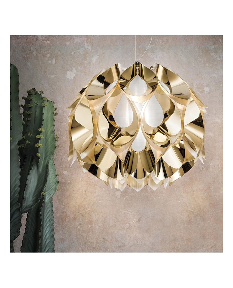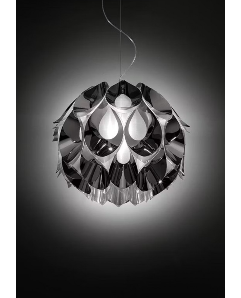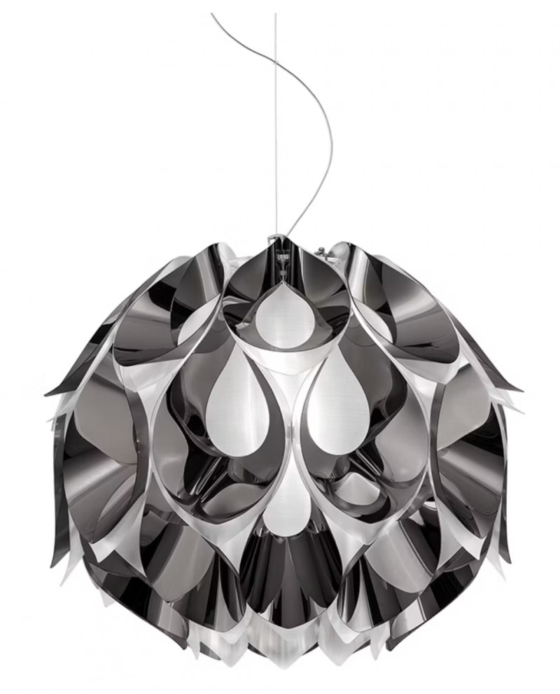 Dans une terre gorgée de soleil, la nature, les couleurs et l'expertise artisanale donnent vie à des pièces très expressives, denses d'archétypes, dont Flora, la collection inspirée de la plante Monstera Deliciosa. Soixante pétales entourent une sphère de satin illuminée par son cœur. La lampe est disponible en version suspension, ainsi qu'en version sol reposant sur de fines pattes qui ressemblent aux pistils d'une fleur. La finition brillante des pétales, à laquelle nous avons ajouté le gris acier, s'obtient grâce à un système innovant de vaporisation d'aluminium qui crée un jeu évocateur sur la lumière, apparemment dérobée au soleil à son zénith.