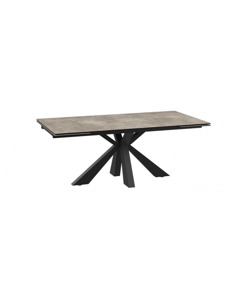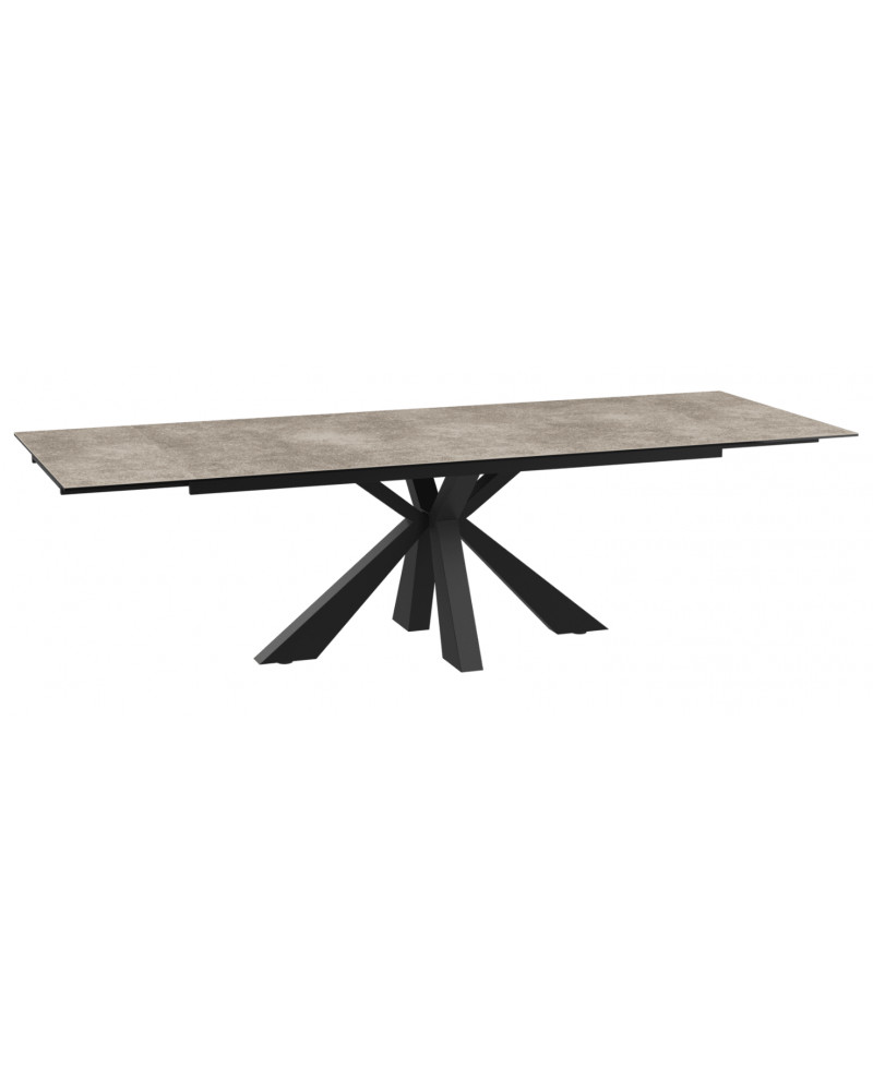 Plateau céramique décor argile. Piètement acier laqué taupe. 2 allonges rétractables.