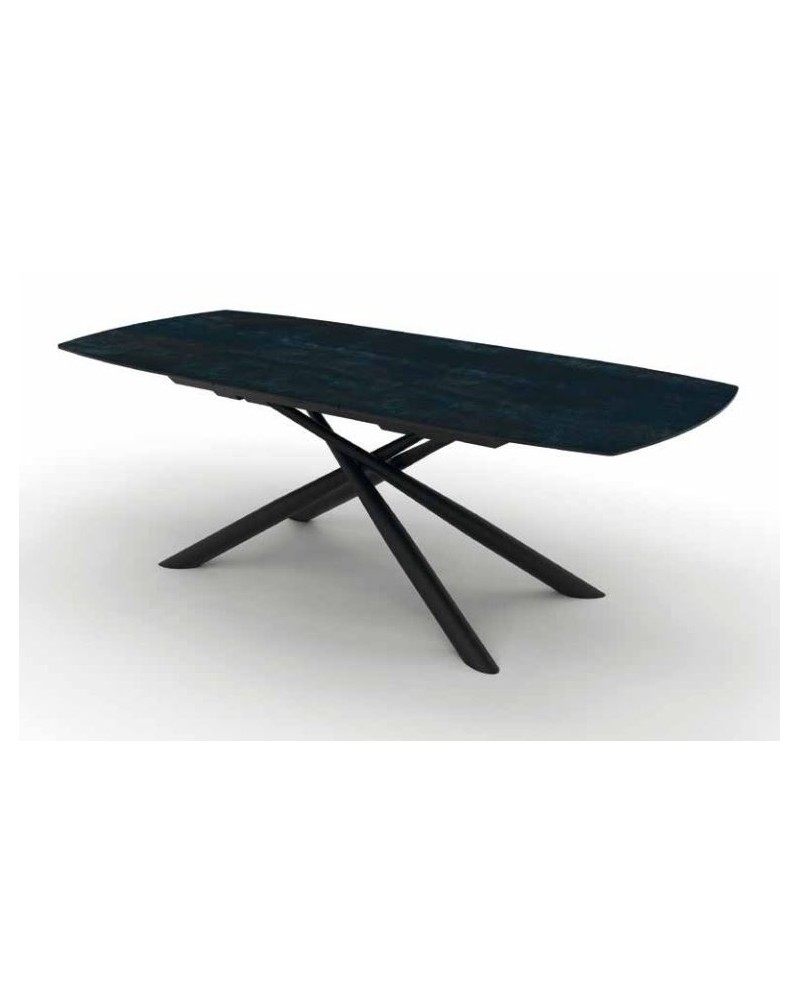 Table de repas LUCIA pour 10 personnes, dessus et allonges en céramique épaisseur 3mm collée sur verre épaisseur 6mm.
