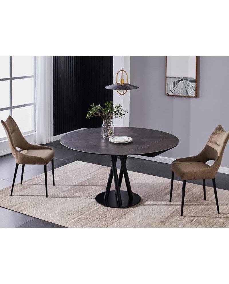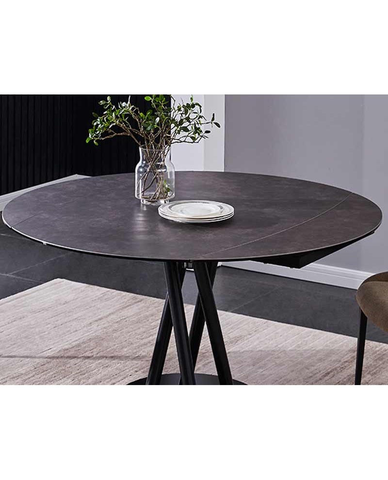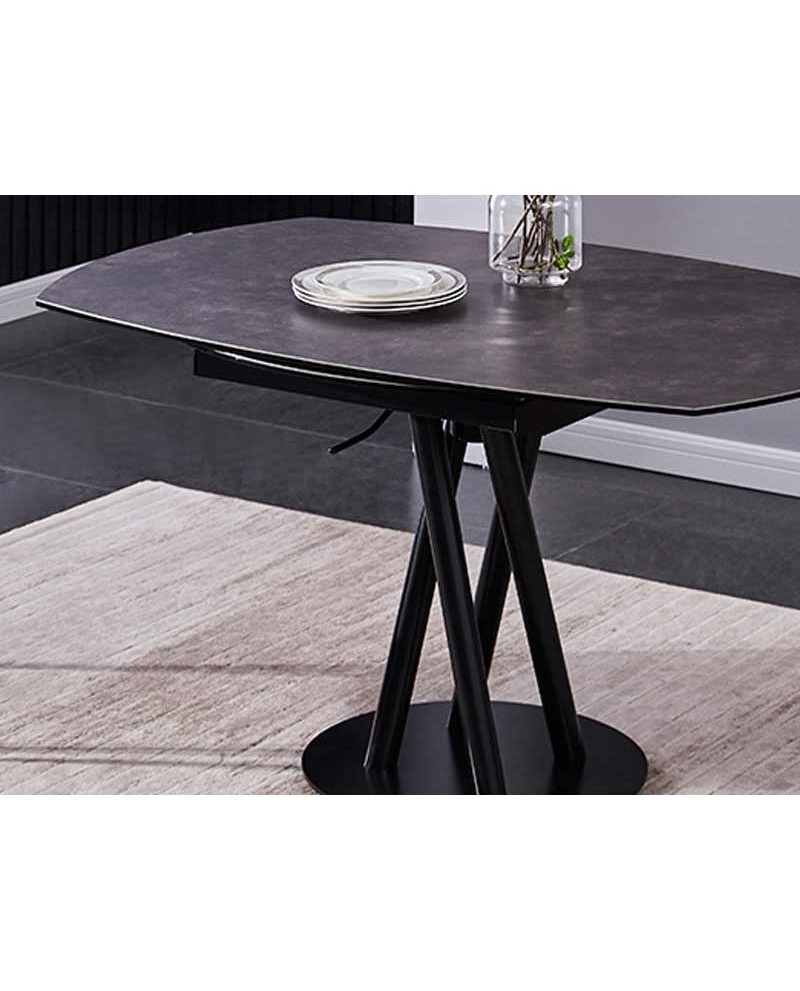 Table de repas SARA dessus et allonges en céramique épaisseur 3mm collé sur verre épaisseur 8mm.