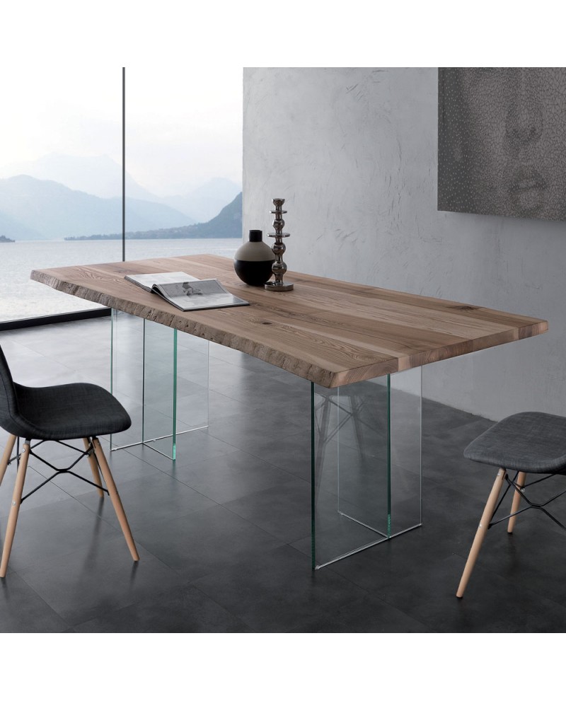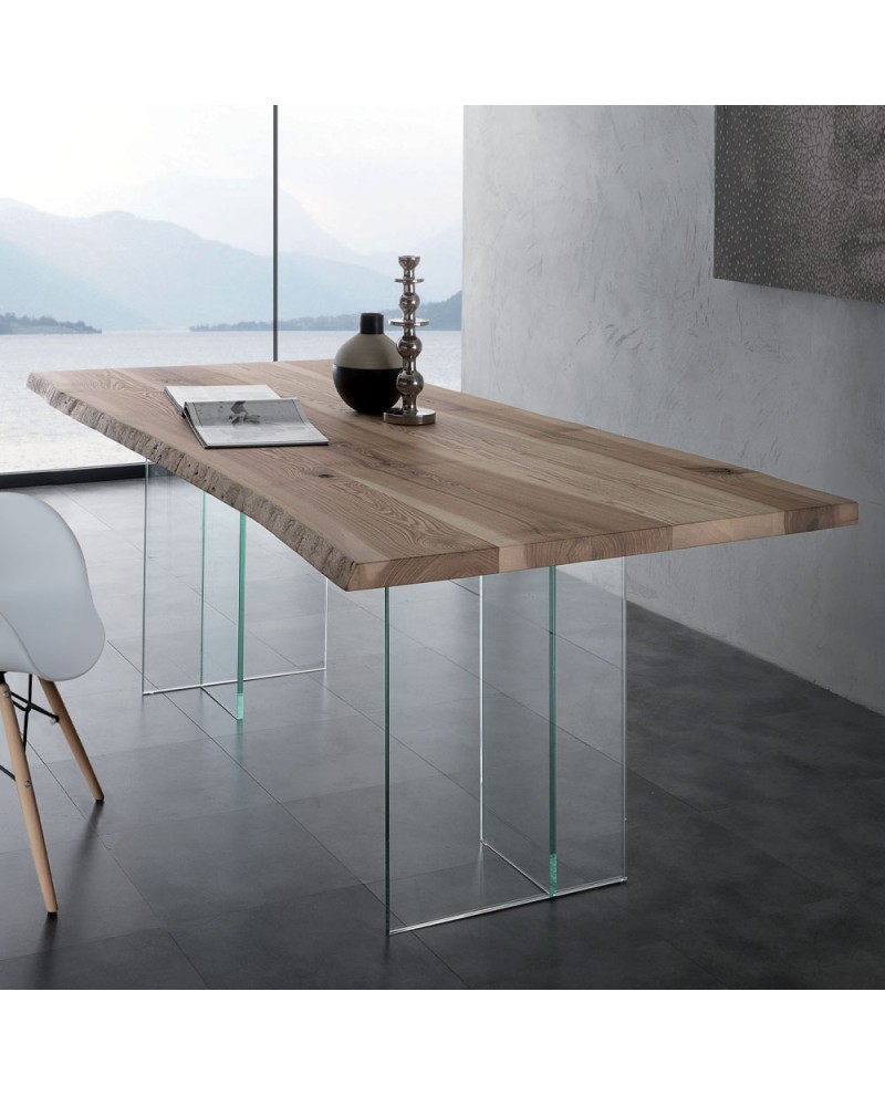 Bois massif naturel brossé avec bord d'écorce épaisseur 4 cm