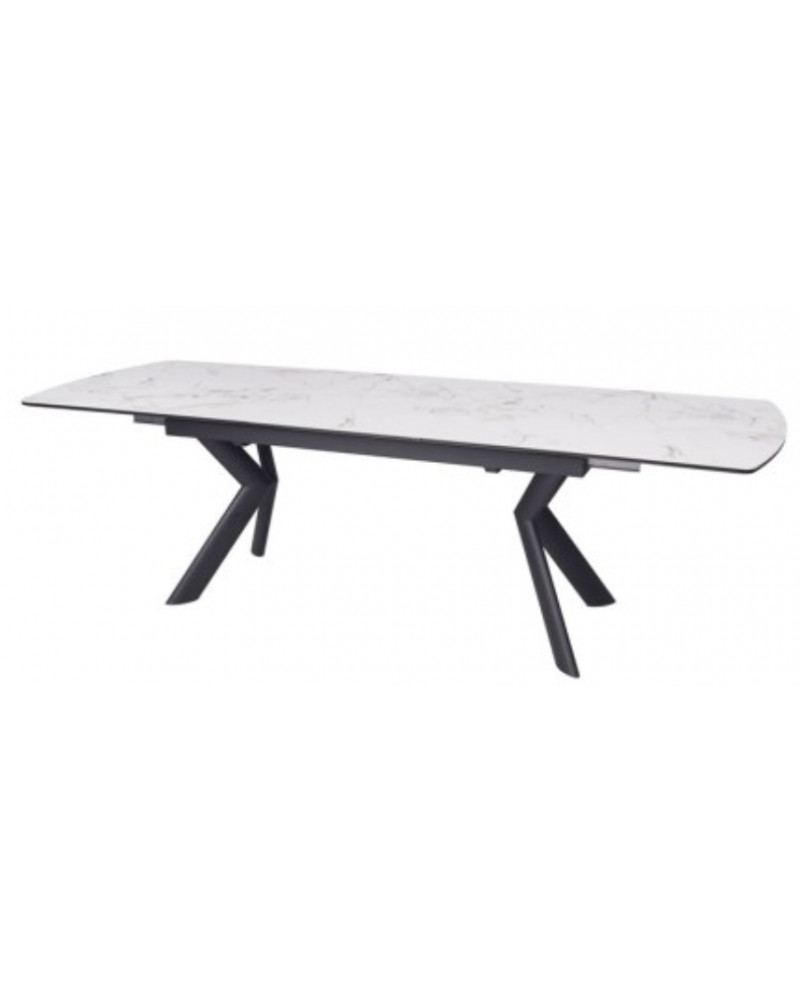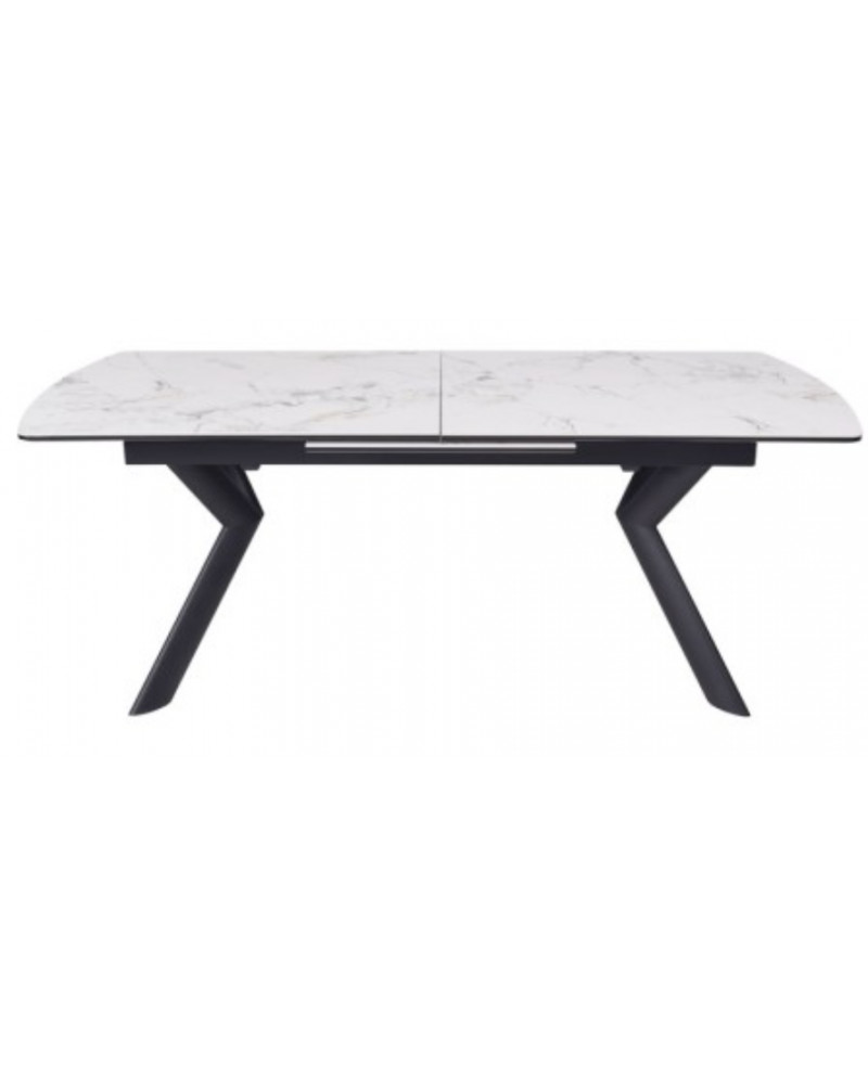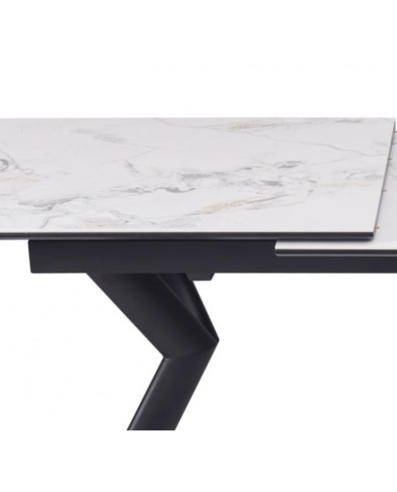 Révélez l'élégance de votre salle à manger avec la Table repas NINA. Son plateau rectangulaire en céramique, au sublime motif marbré jade blanc, s'harmonise parfaitement avec son piètement contemporain aux lignes audacieuses.