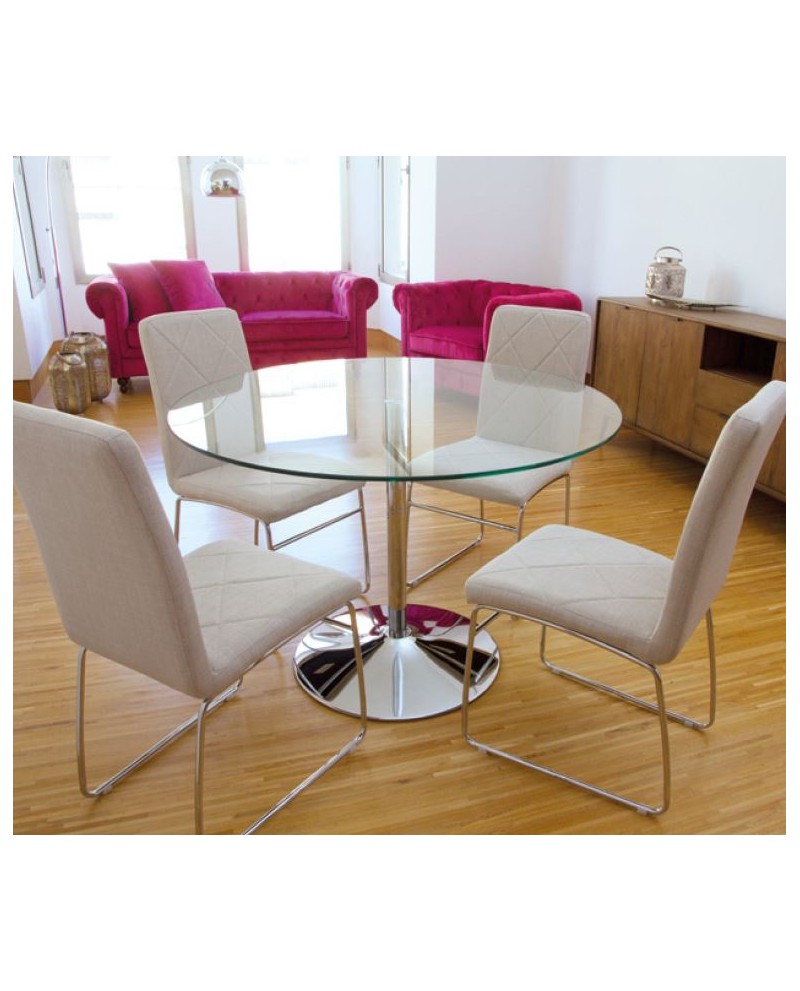 Dimensions: diam. 110 x H 76 cm, épaisseur verre 10mm.