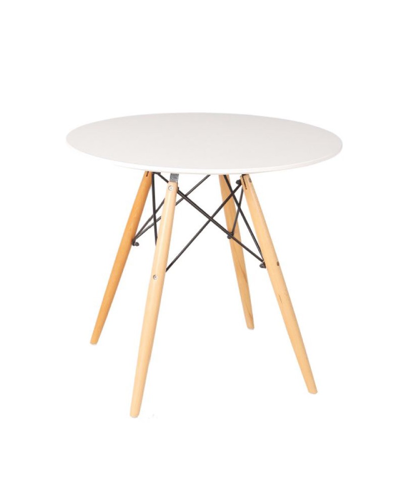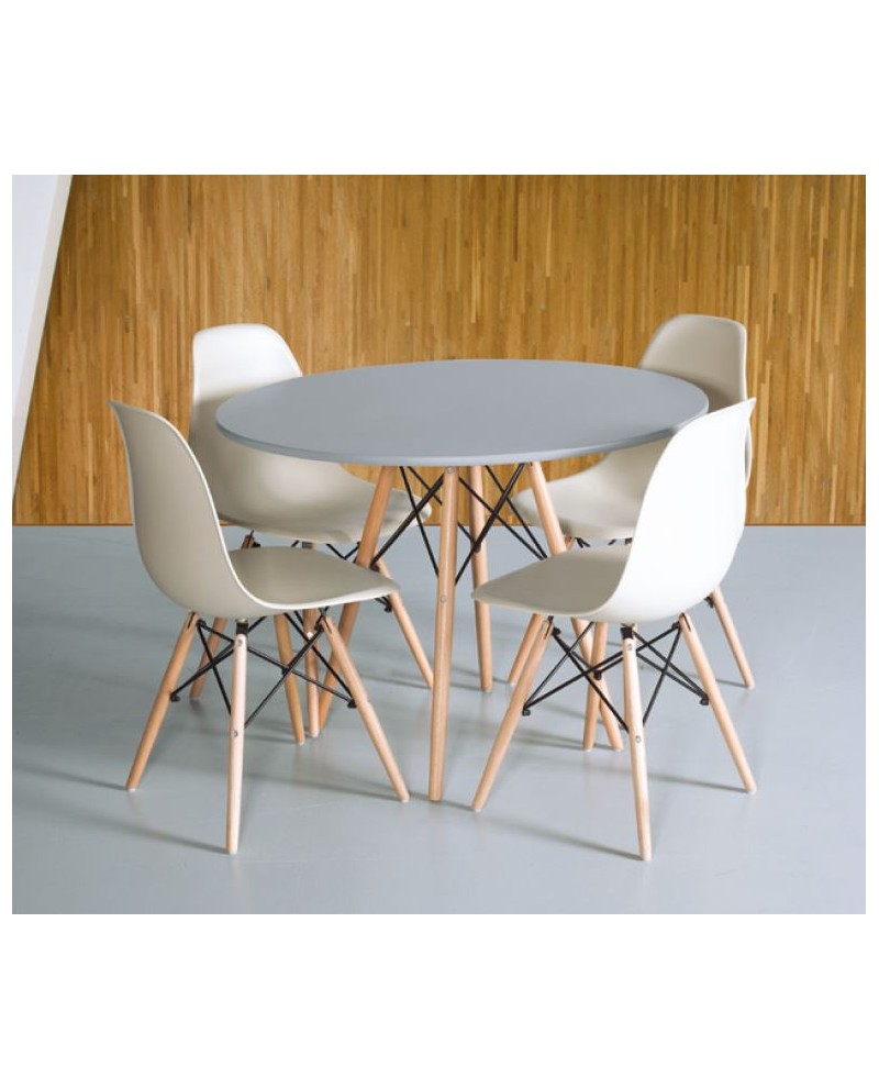 Table de repas plateau en MDF, piètement en bois hêtre vernis naturel.